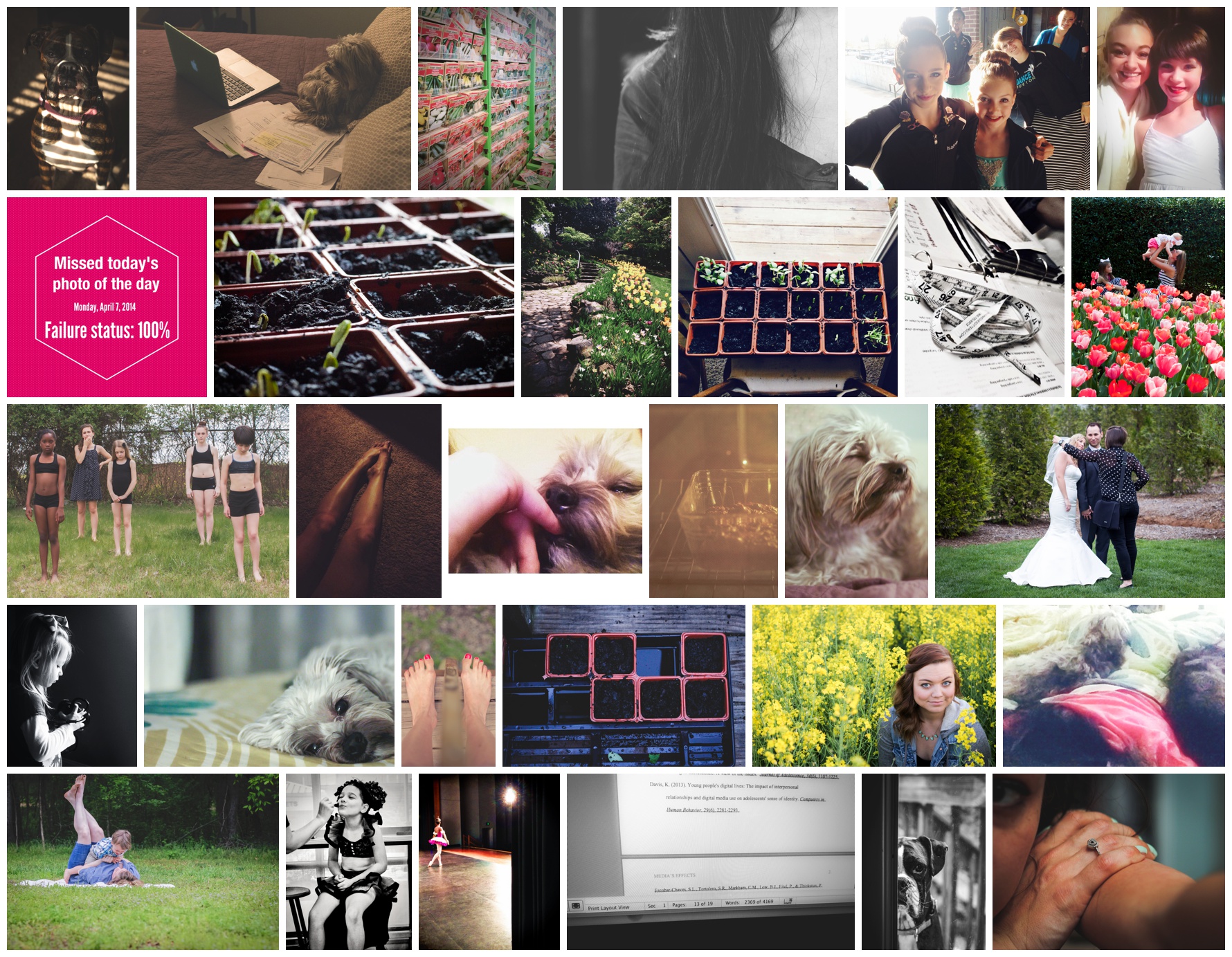 My approach to the project was not to take a photo every day with my DSLR (although that is the driving force behind the concept and I have gone through periods of frequency and infrequency). It was not to be super creative. I am out to conquer 2 main goals here: