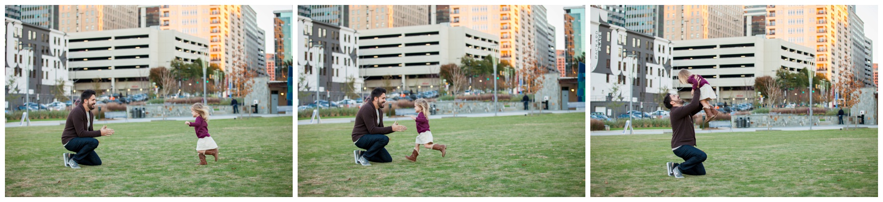 Photographing another photographer’s family is such a mix of emotions. To add to the fun, we shot in uptown Charlotte – a place I’ve never photographed before. We started in front of Knight Theatre and then headed over to Romare Bearden Park. I was intimidated at first by the largeness of it all. The newness and breath of fresh air of the location was so nice though. I kind of fell in love with the lights and the variety of the spots we visited. Samantha is a newborn photographer and Robbie is the lead pastor at Hope City! …They’re kind of my favorite power couple!