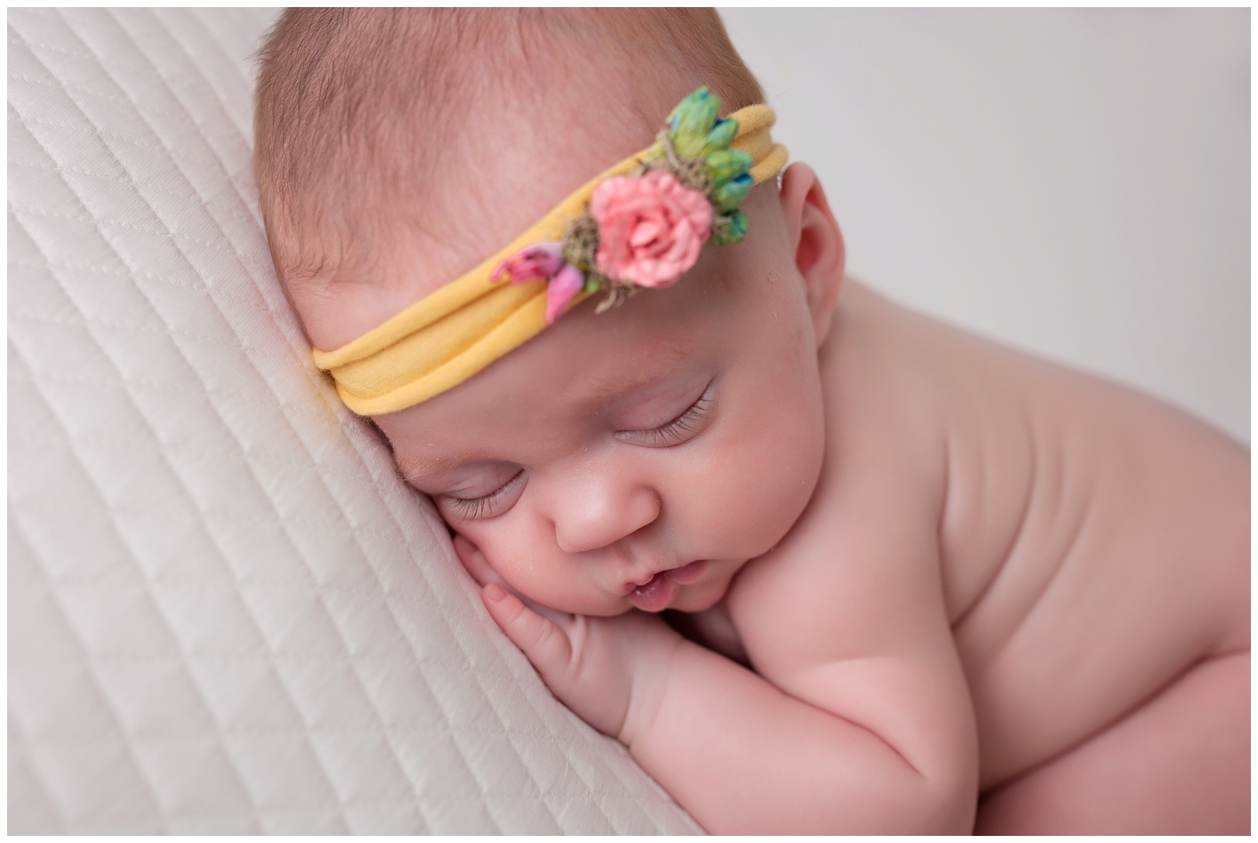 Camille came to my studio for her baby portraits at four months old but only weighing around 8 lbs. (same as a lot of 10 day olds I have photographed!) because she came 13 weeks early at just 27 weeks + weighed less than 2 lbs. Unfortunately her parents spent some time in the hospital leading up to her birth because of complications with her mom’s pregnancy, so it was a very scary time with much left unknown for the future. Camille hasn’t had it easy these past four months but they were just discharged from the hospital about a month ago and have been adjusting to home life rather than hospital life.