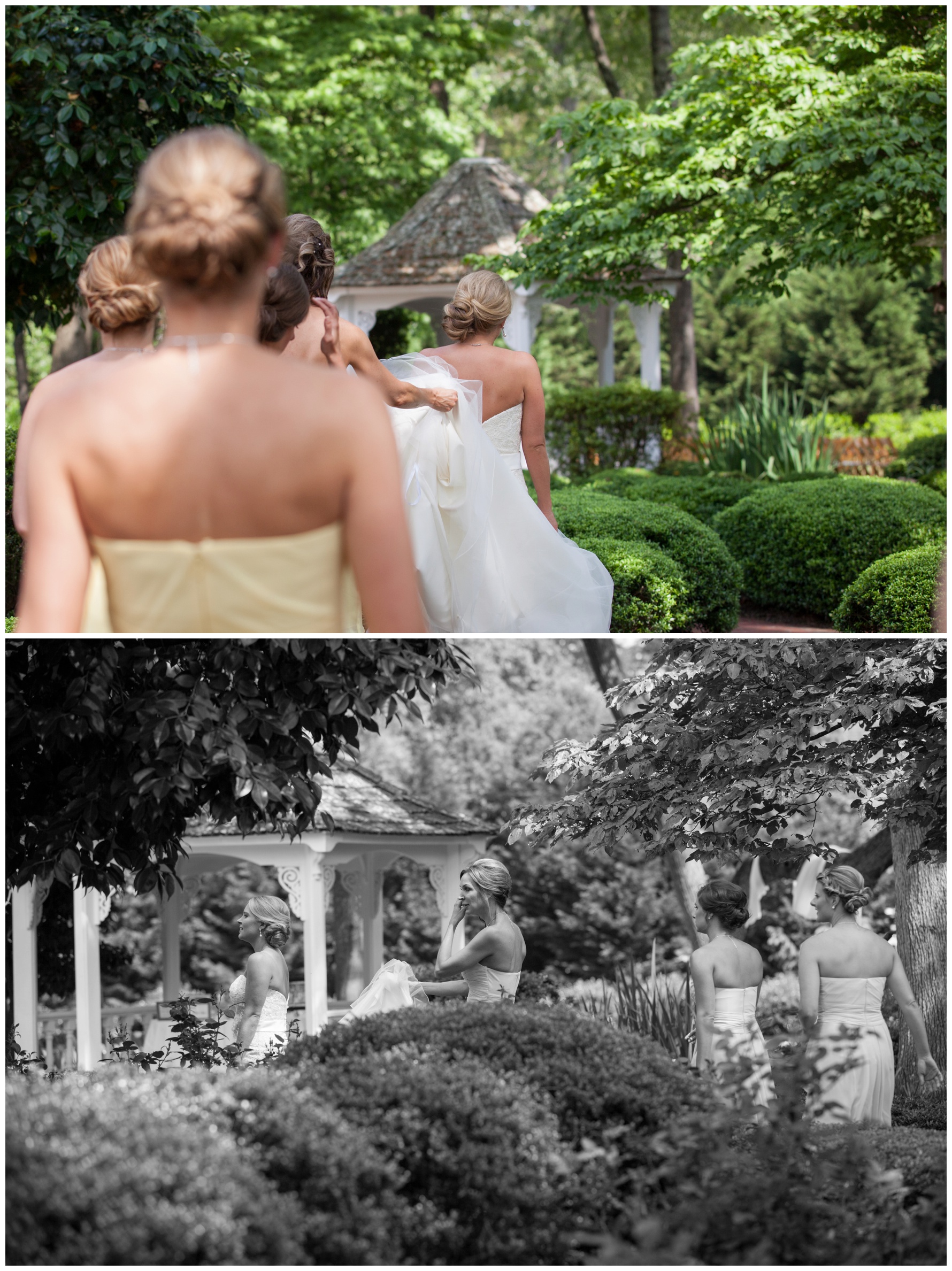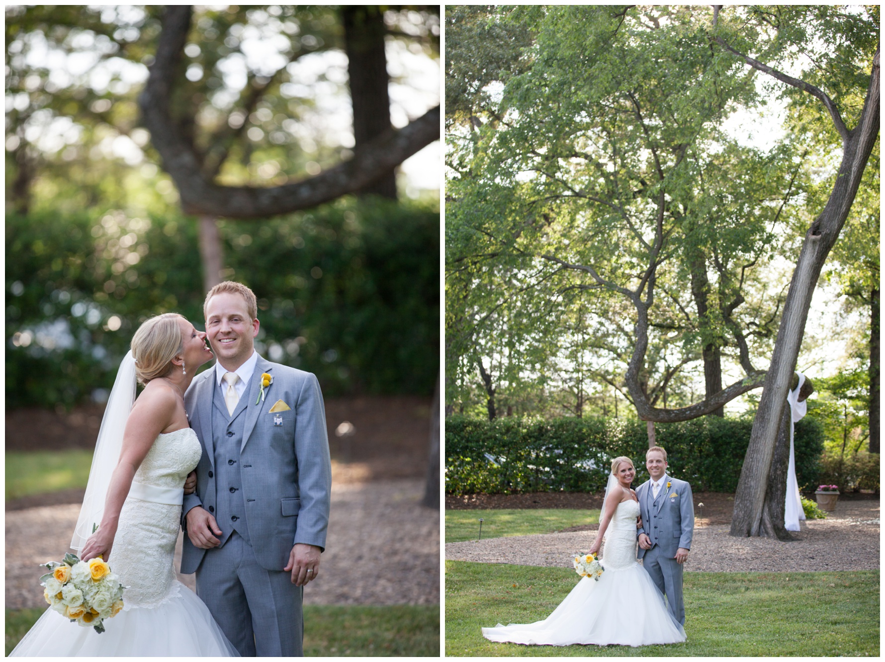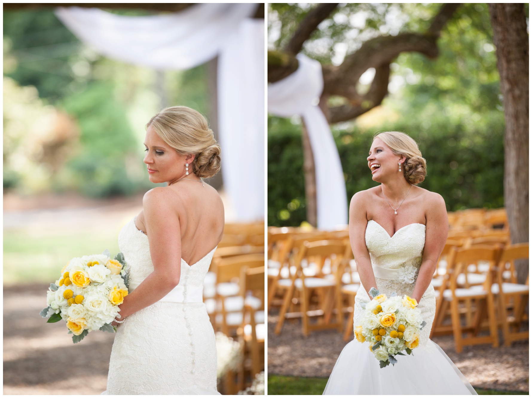 Their ceremony + reception took place at Whitehead Manor in Charlotte, NC. It was a perfect day for to be married…warm, but not unbearable. The sun shined through the trees onto the ceremony and the white fabric draped over the trees was a stunning touch to a simple and magical spot.