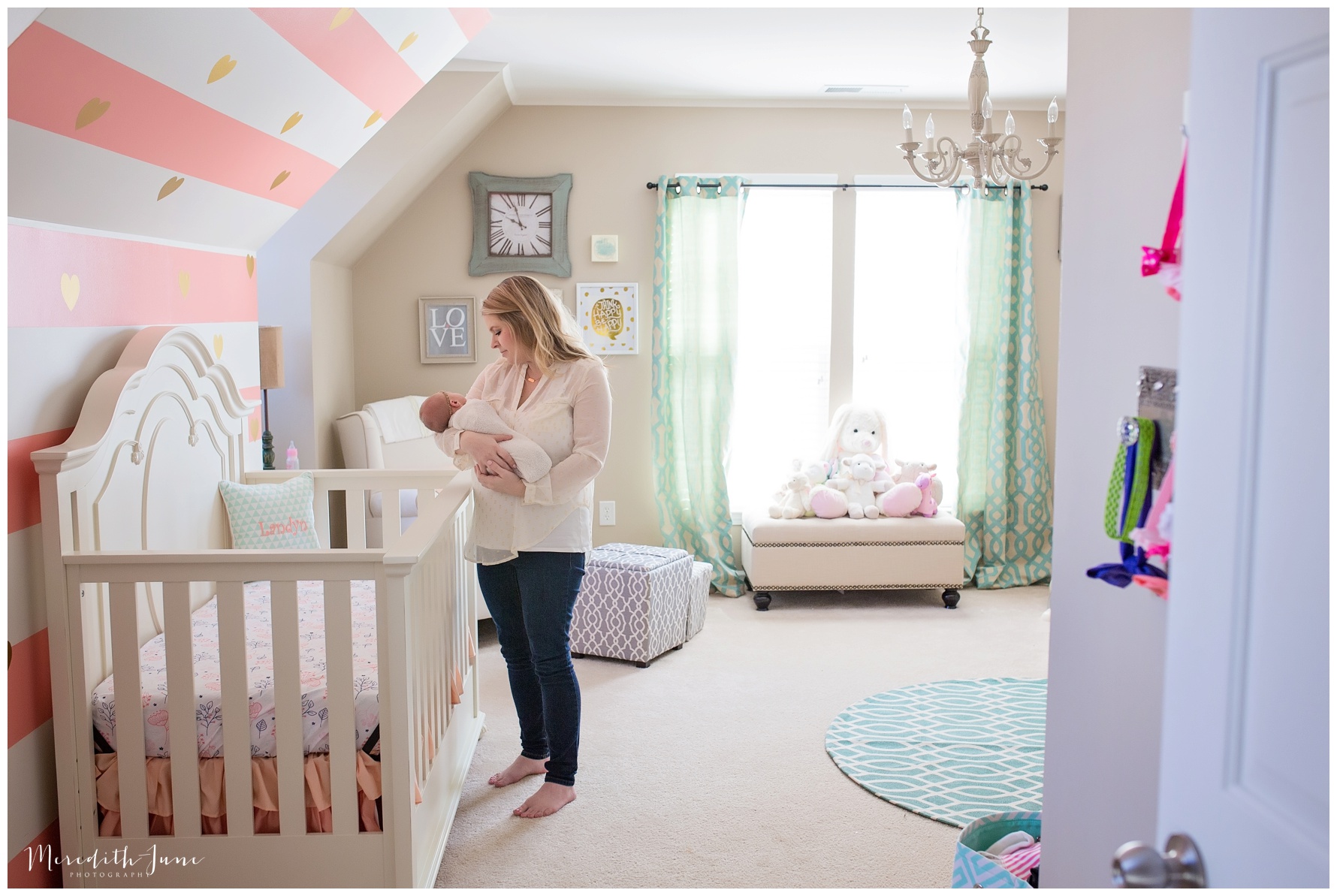 I love ‘being a fly on the wall’ in a brand new nursery and shooting those precious moments between mommy and baby like I did at Landyn’s session. We have some really sweet close up and intimate moments and then other images that show the entire room in all it’s glory. It is so great to be able to see those side by side to see the big picture and the details.