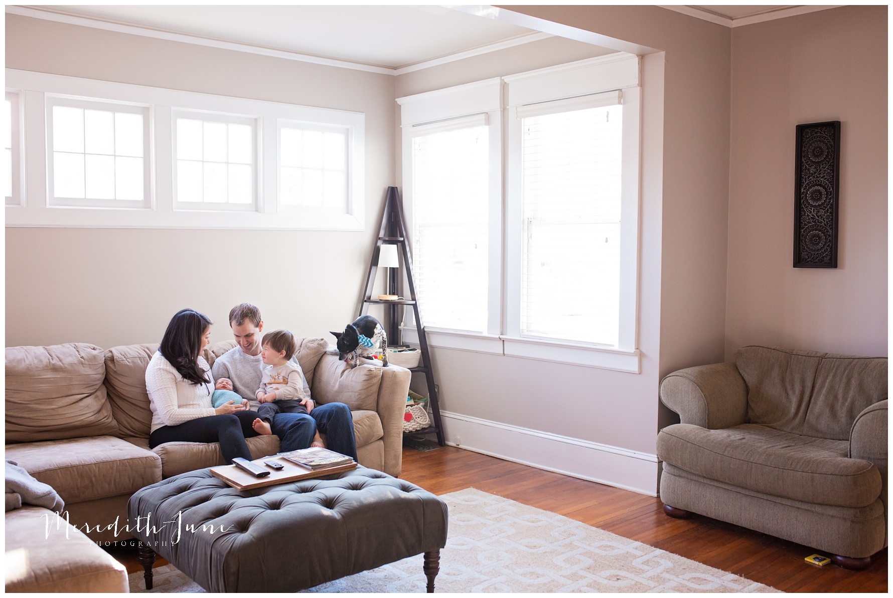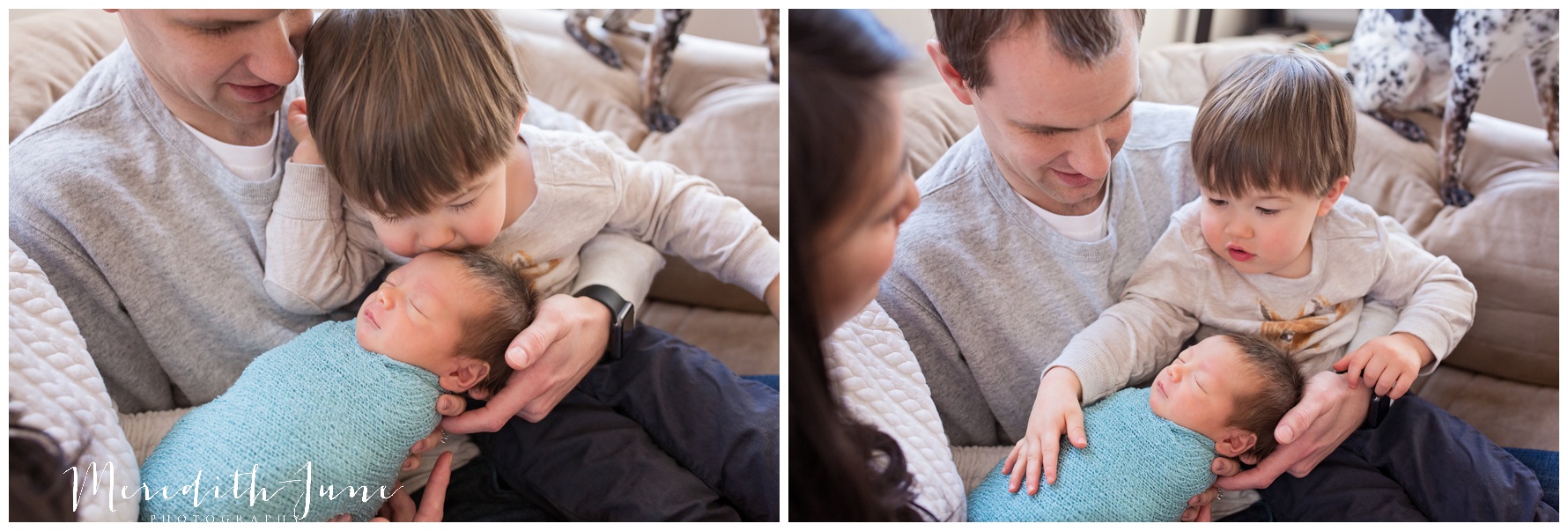 Baby Hudson has made his grand entrance and I am so excited to introduce you to him through this post! Being an infant photographer, I often get to meet families before the baby even comes. I first met Hudson’s family in December during their maternity photo session. This little guy was welcomed by a super sweet mom and dad and the most awesome big brother, Henry. You’ll find their pup Tuesday making an appearance here and there. Big doggy fan here, people…big doggy fan. I apologize in advance if I give your dog more attention than necessary.