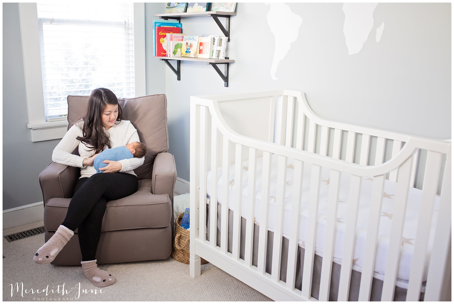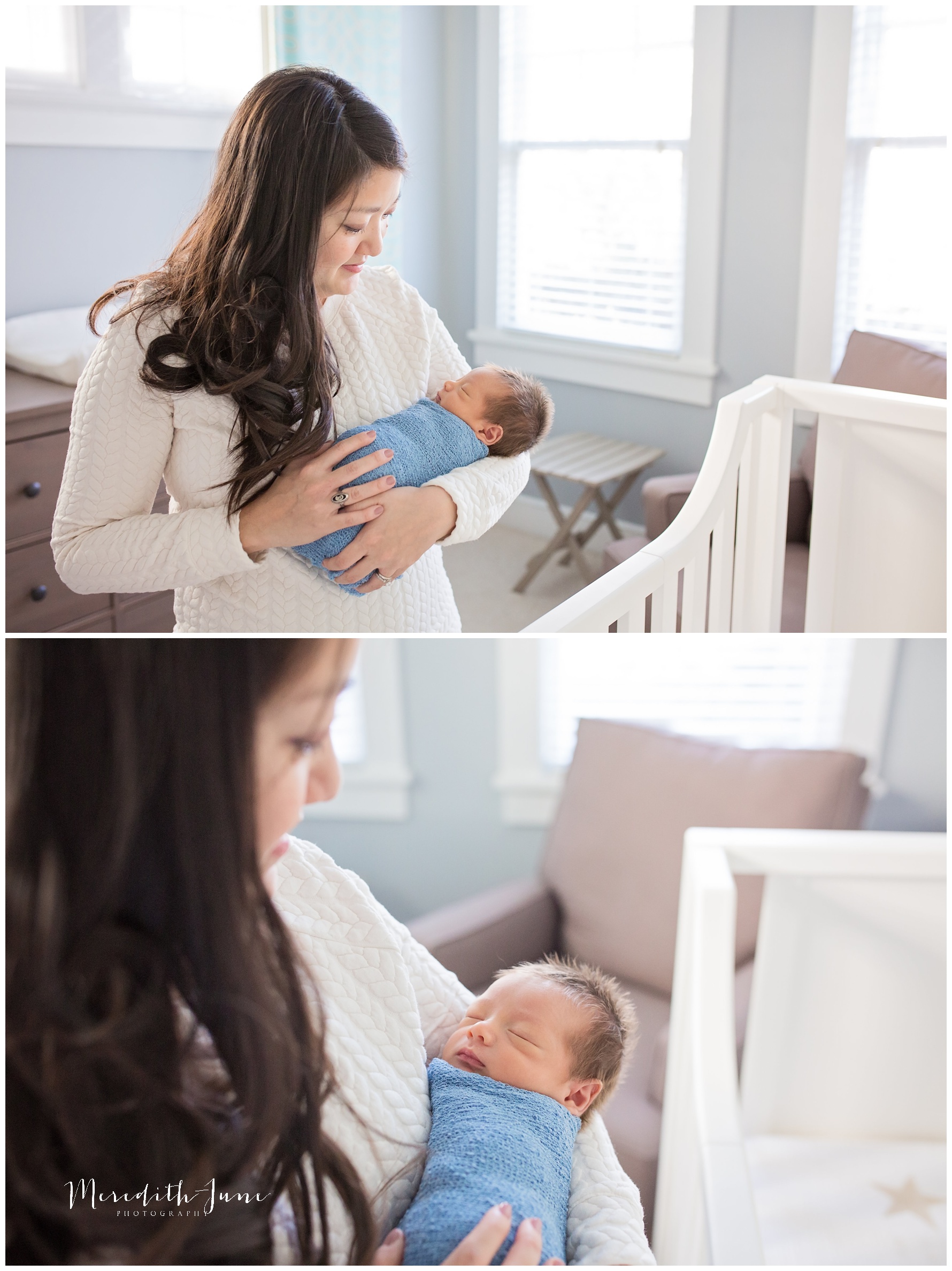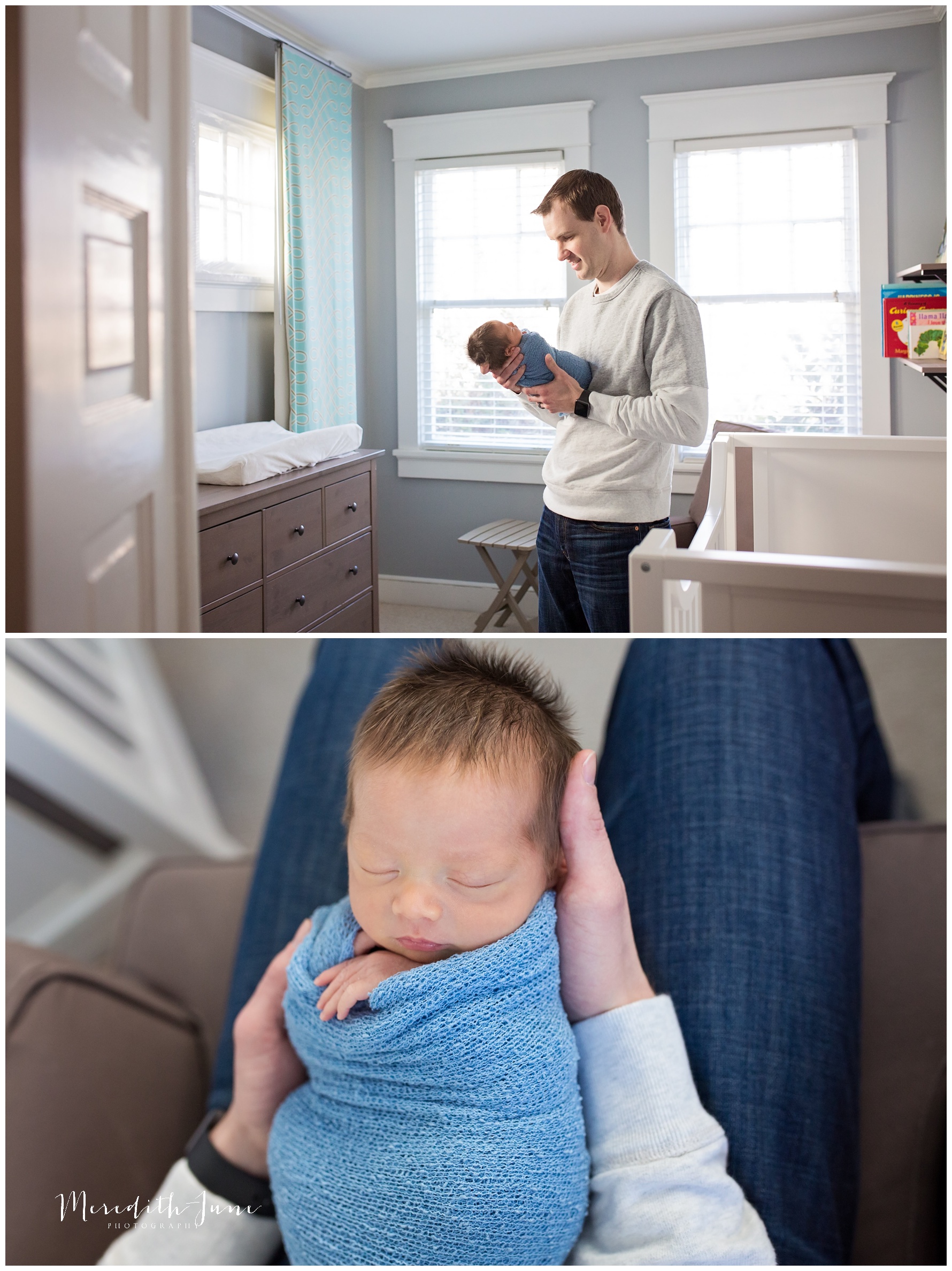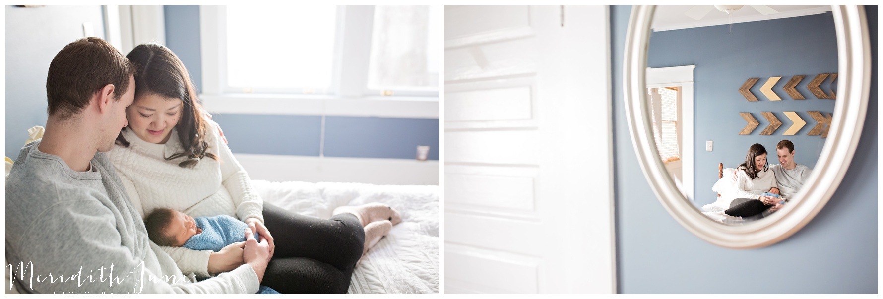 Their family chose to do a lifestyle newborn session. I loved being able to use their living room, nursery, and guest room. The guest room was perfect with the sunlight that poured in, clean and white bed, and distraction free space. These things help your eye go straight to the bond and love in the images.