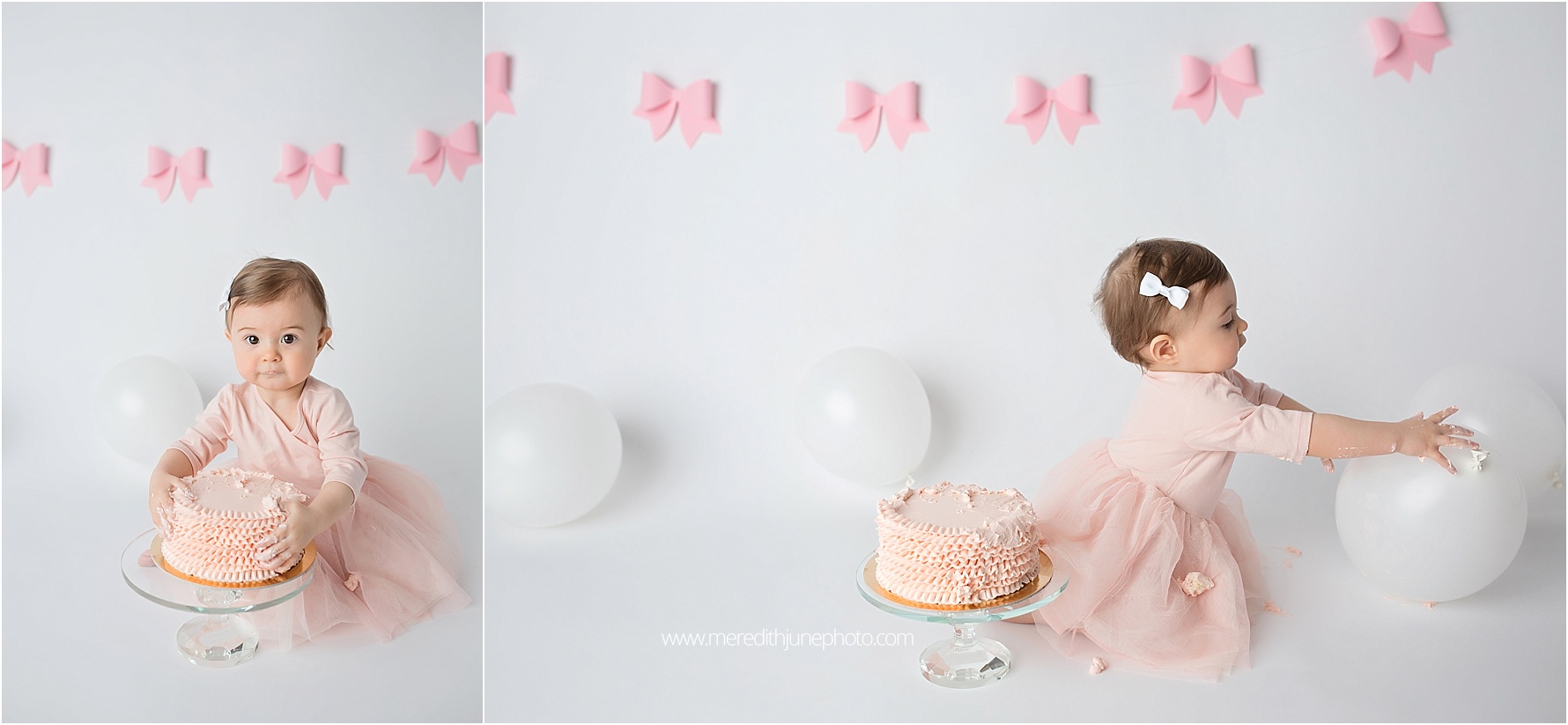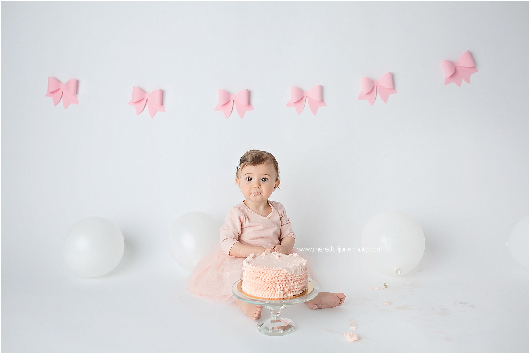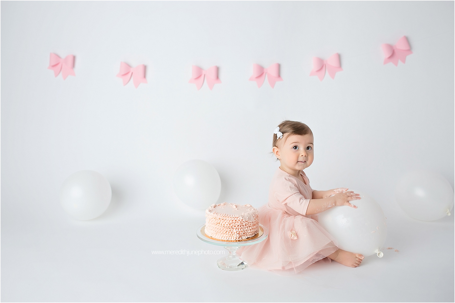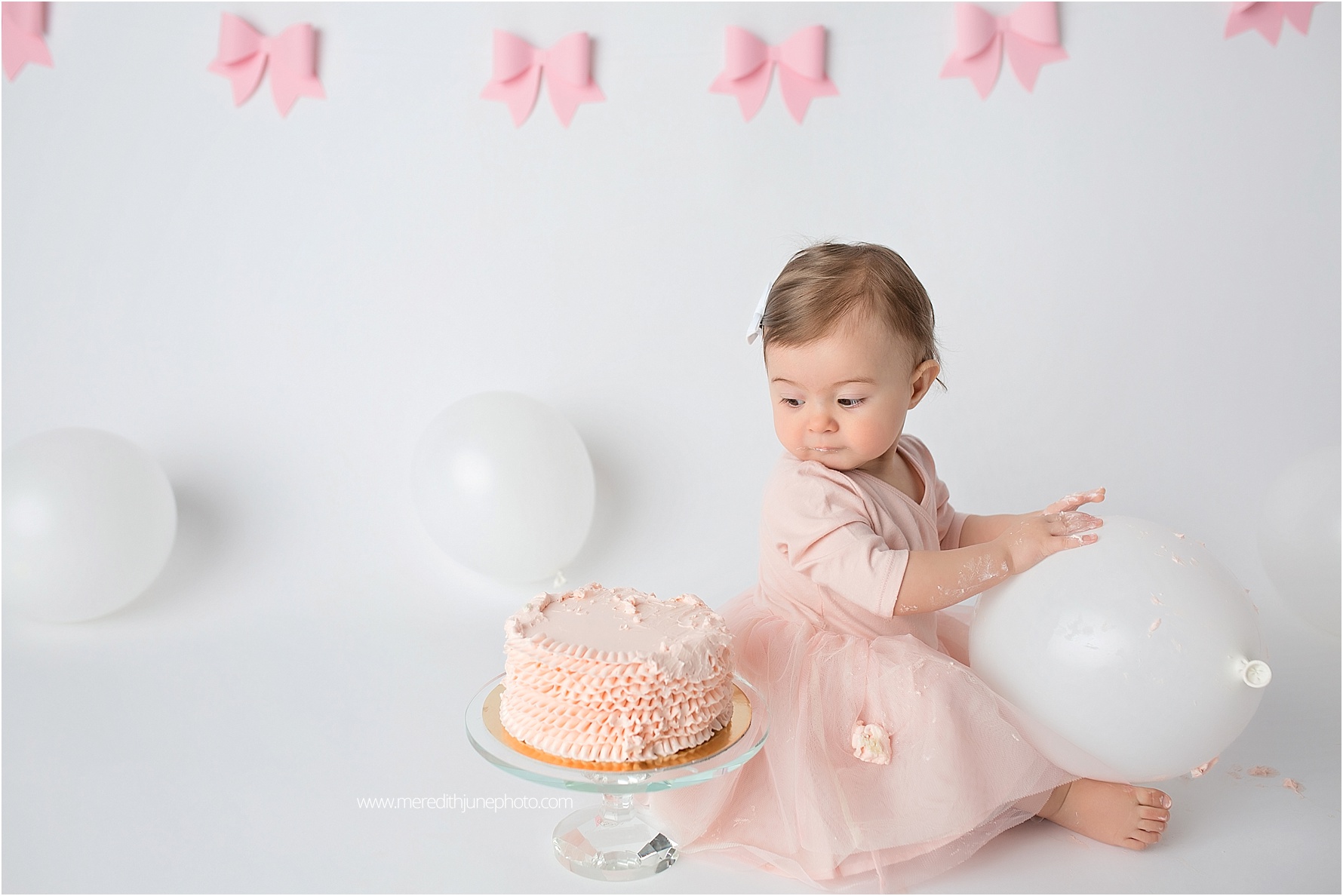 Its always funny to see how each baby will react to the cake. Some of them take it nice and slow, but love the icing; some just like to play with it; some babies are terrified of the cake or hate being messy, and some, like Caroline here, just want to play with the balloons! I found her ahhhdorable!