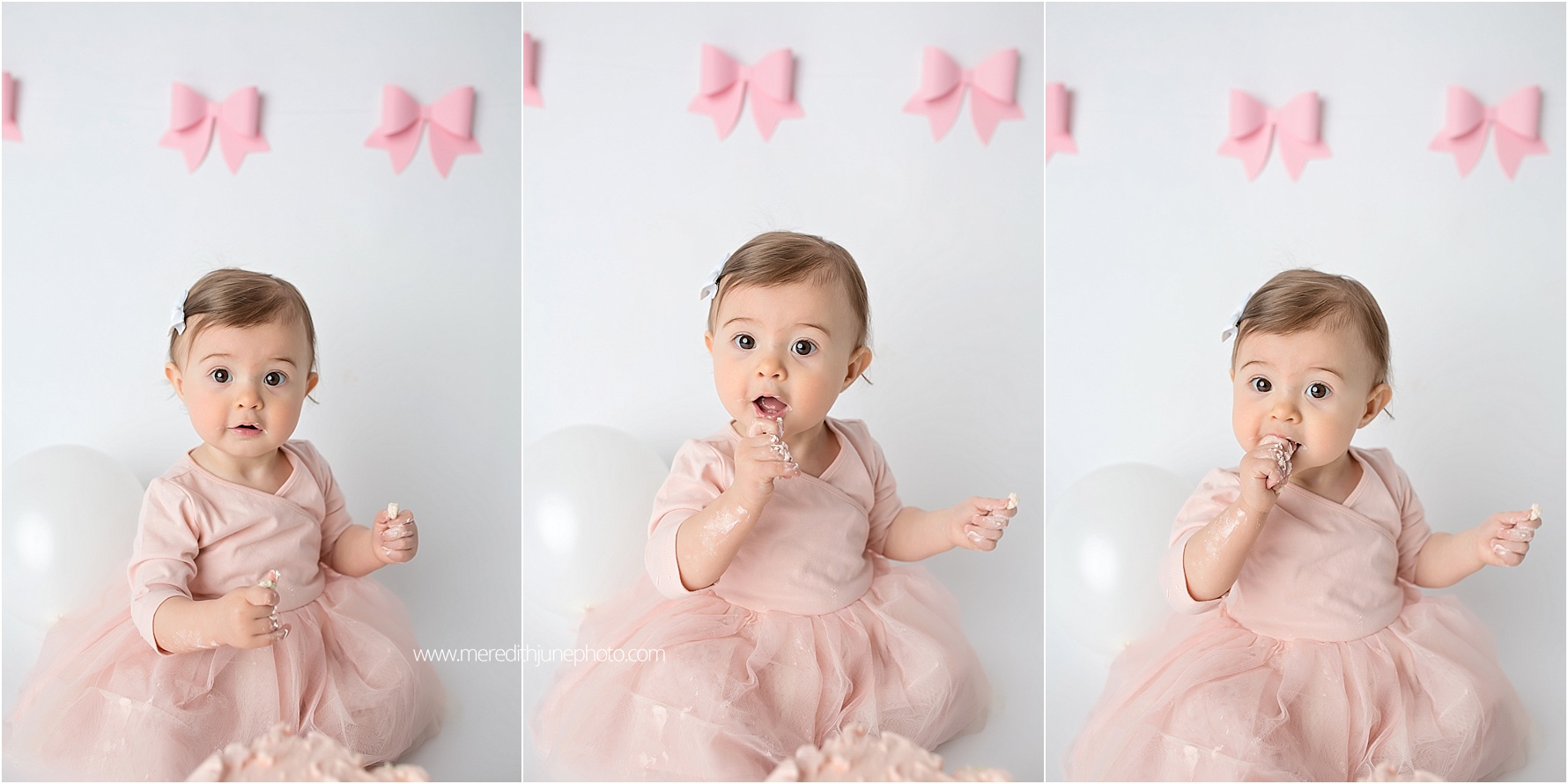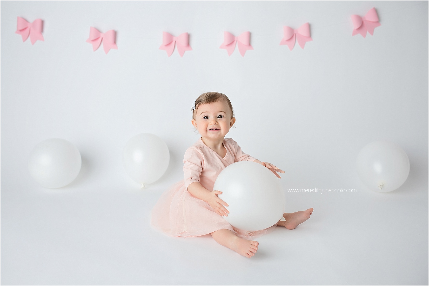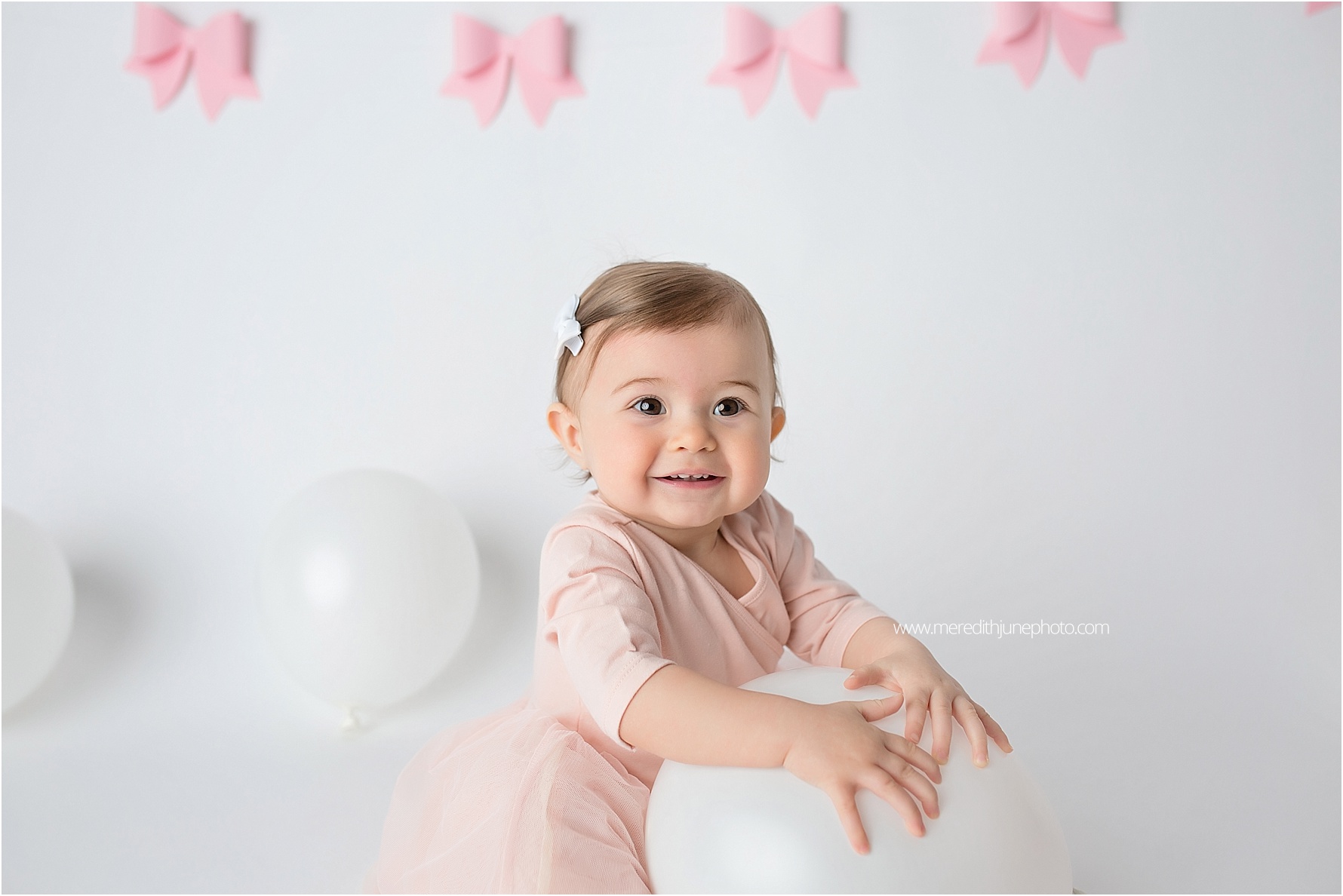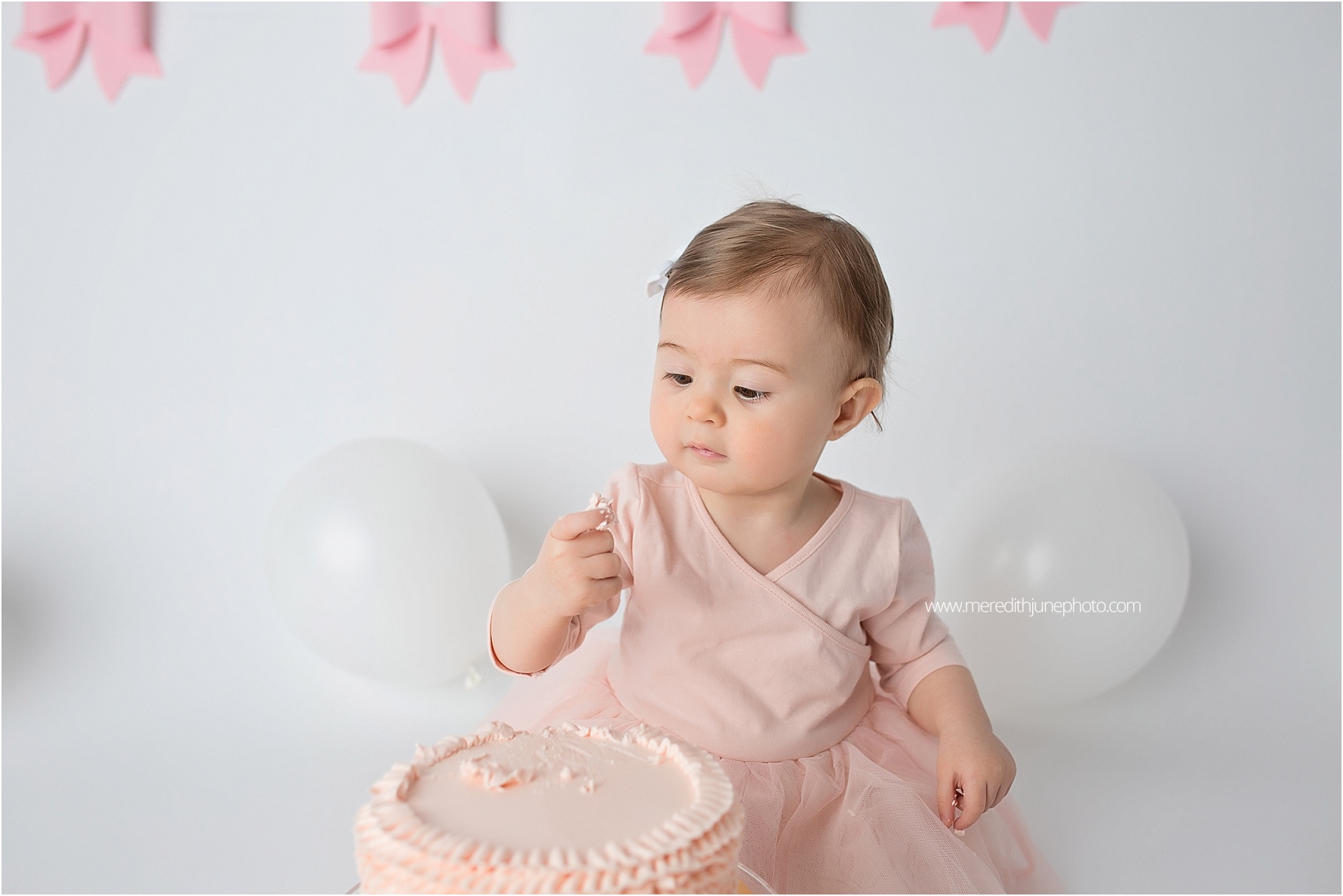 Its always funny to see how each baby will react to the cake. Some of them take it nice and slow, but love the icing; some just like to play with it; some babies are terrified of the cake or hate being messy, and some, like Caroline here, just want to play with the balloons! I found her ahhhdorable!