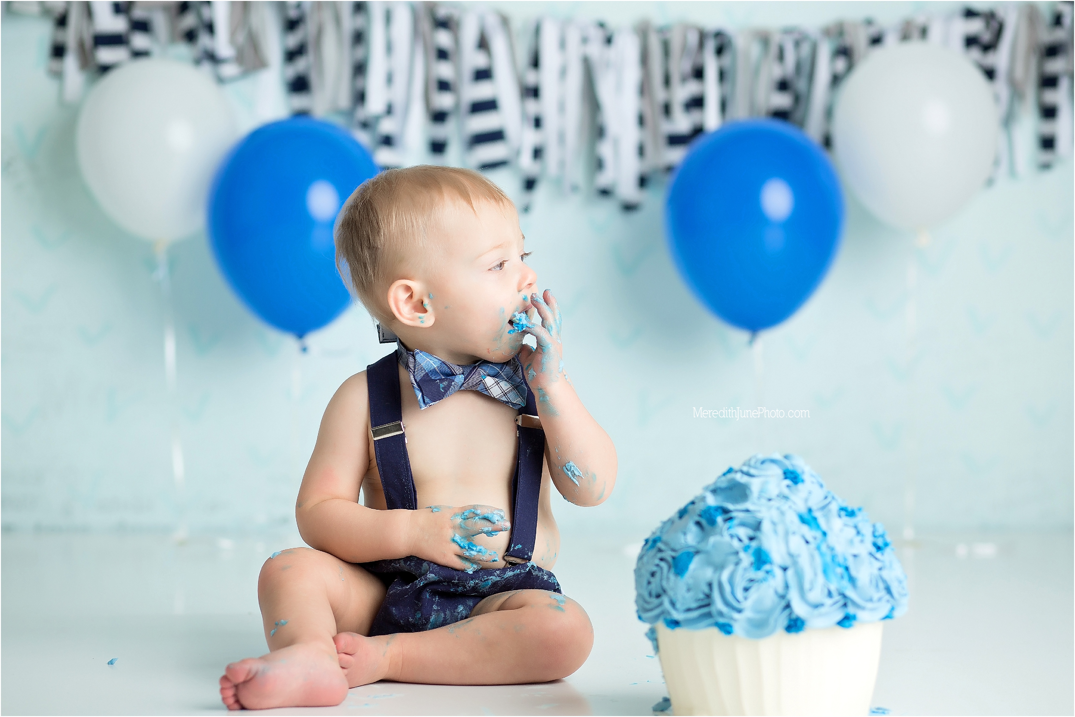 Cake smash days are the best days! Some babies love it and some are disgusted. It’s always funny to see which way its going to roll. Blue and white are perfect colors for a little boy one year session and came together nicely for Callan’s set.