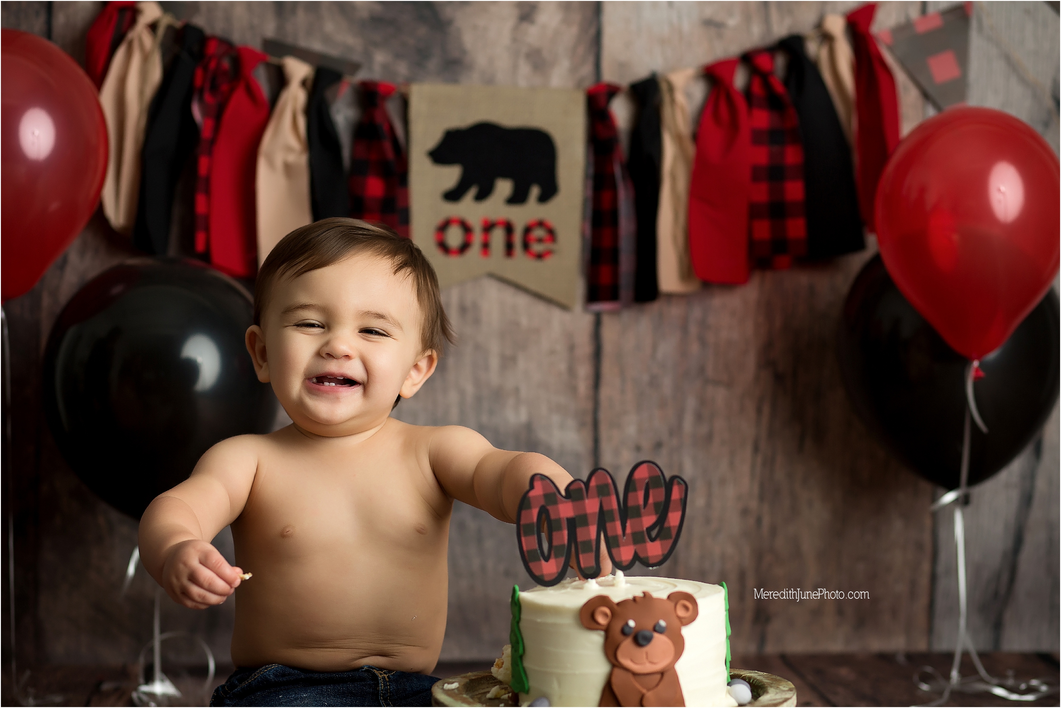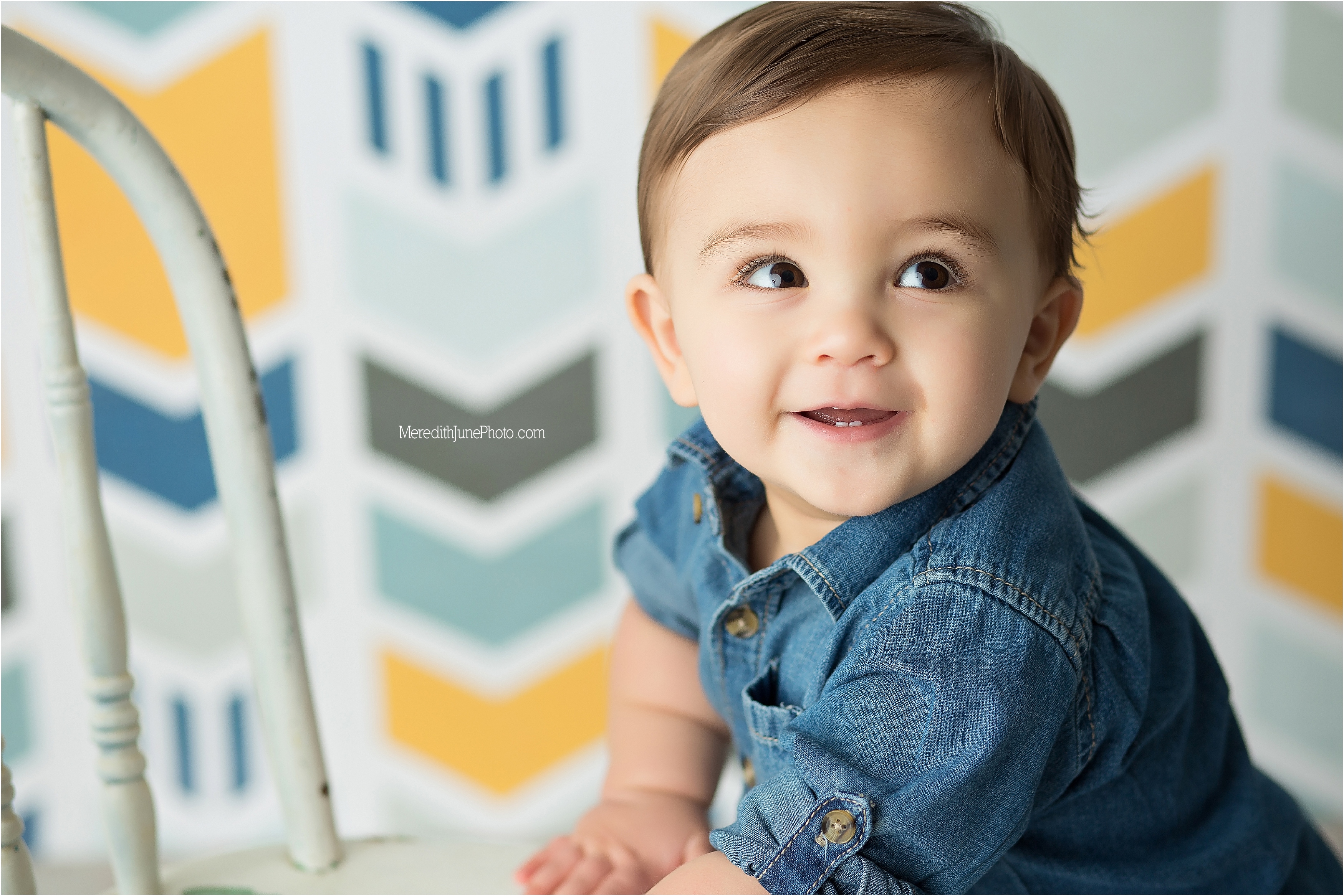 Gianmarco’s cake smash was a blast! He was the happiest little boy and loved playing in his cake icing! That little smile makes my heart melt! His parents and I decided to go with a rustic, mountain theme with red and black colors for the cake smash, but we also took some bright and colorful shots. We chose blue and yellow for these, to give a variety in color for his background in this session.
