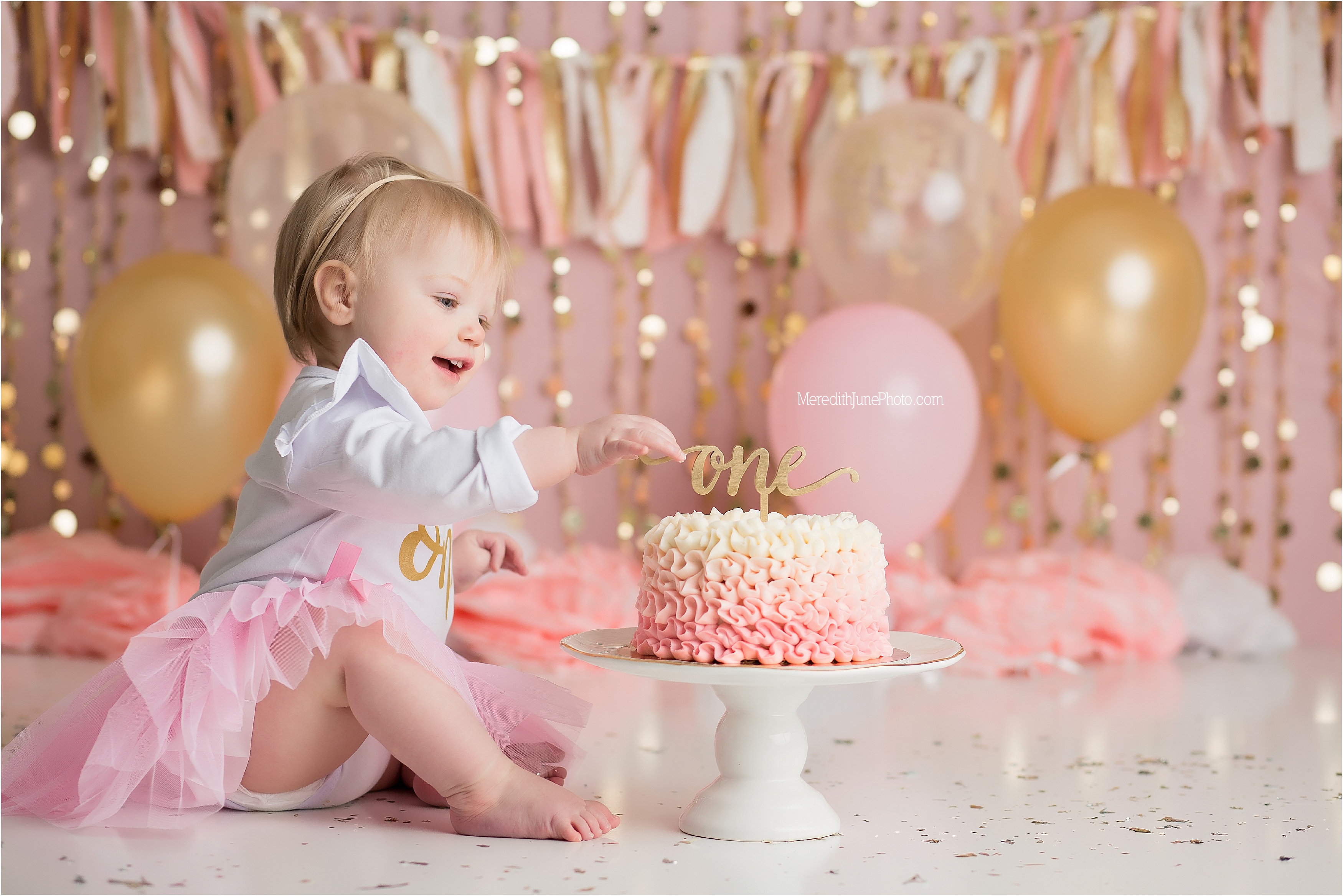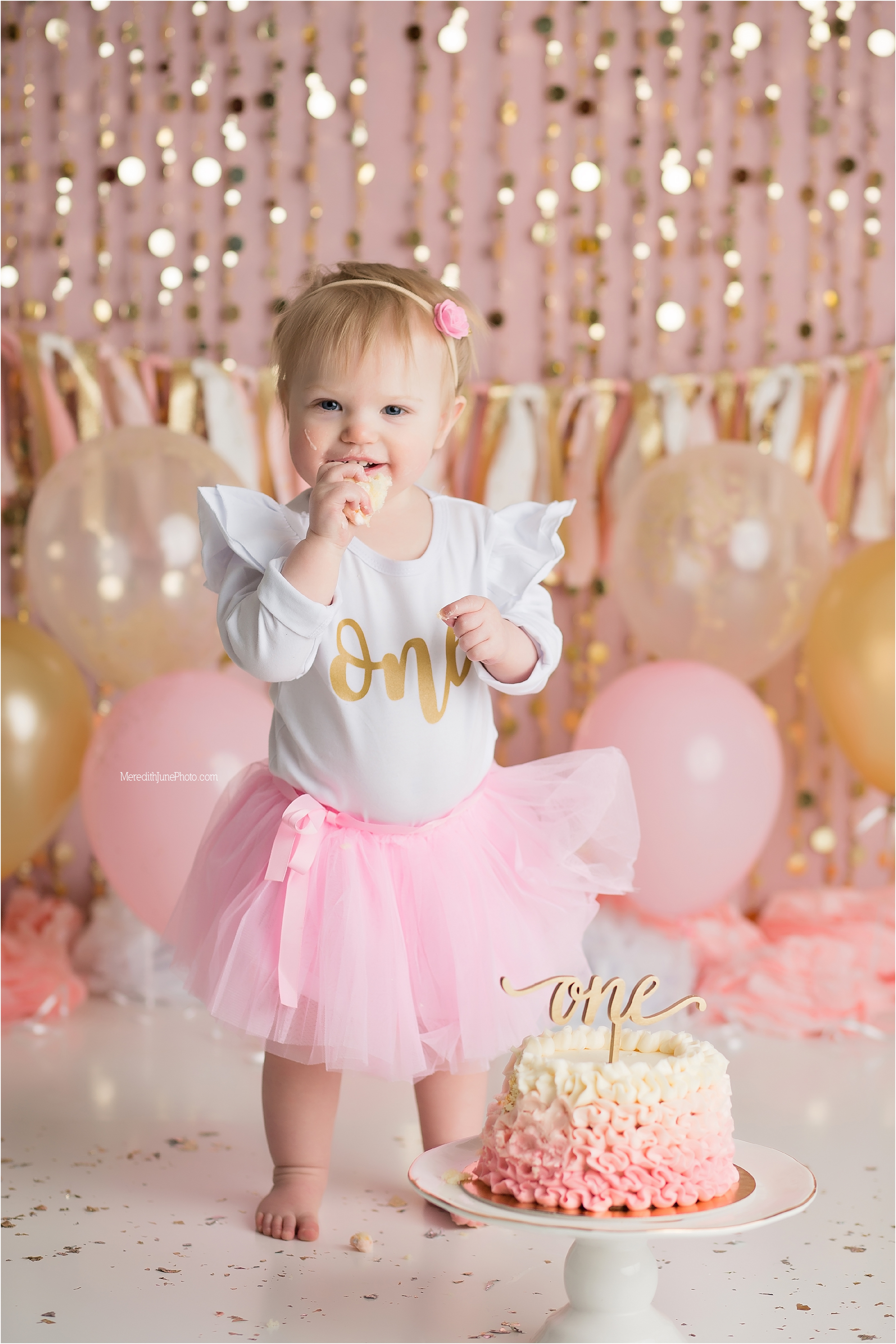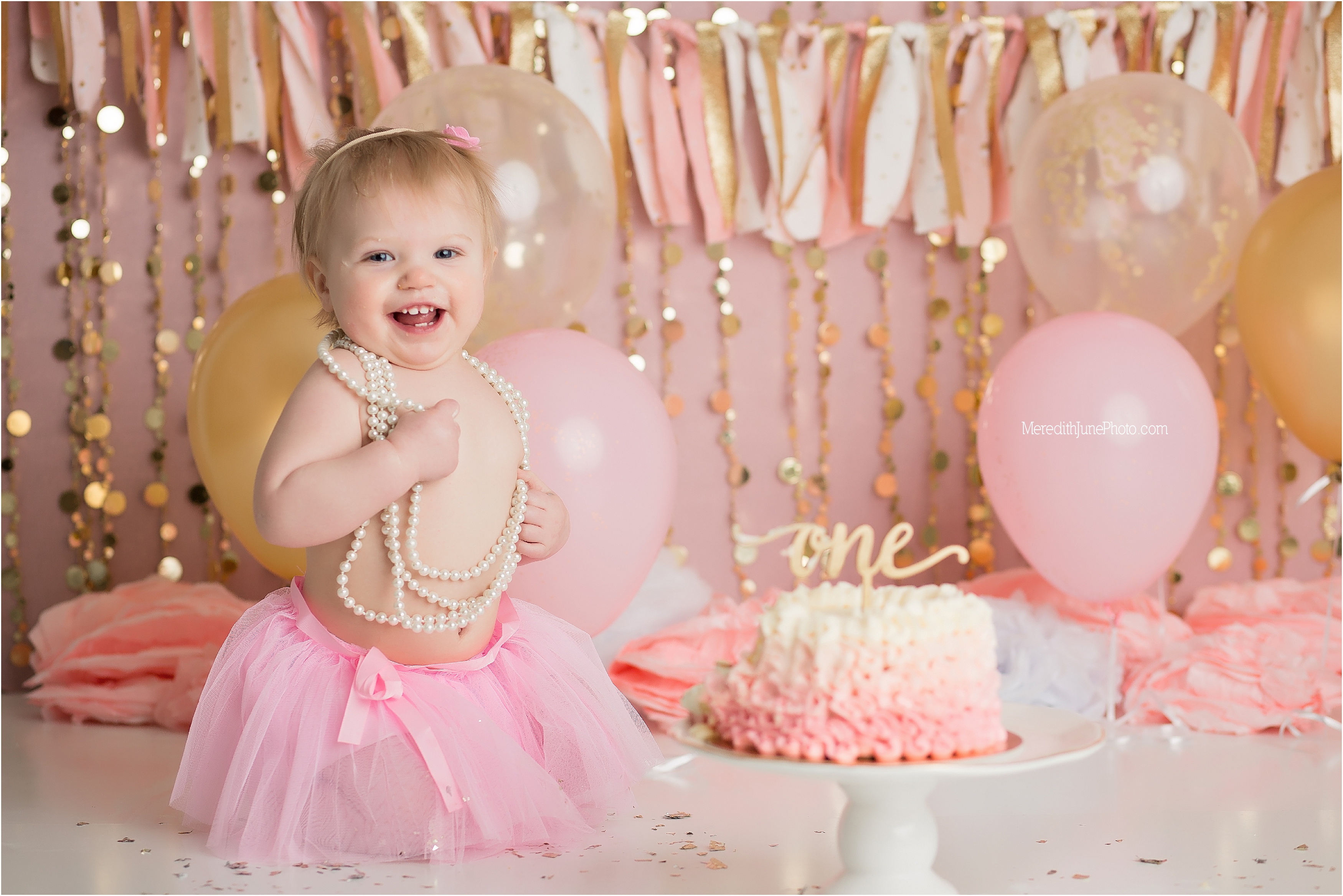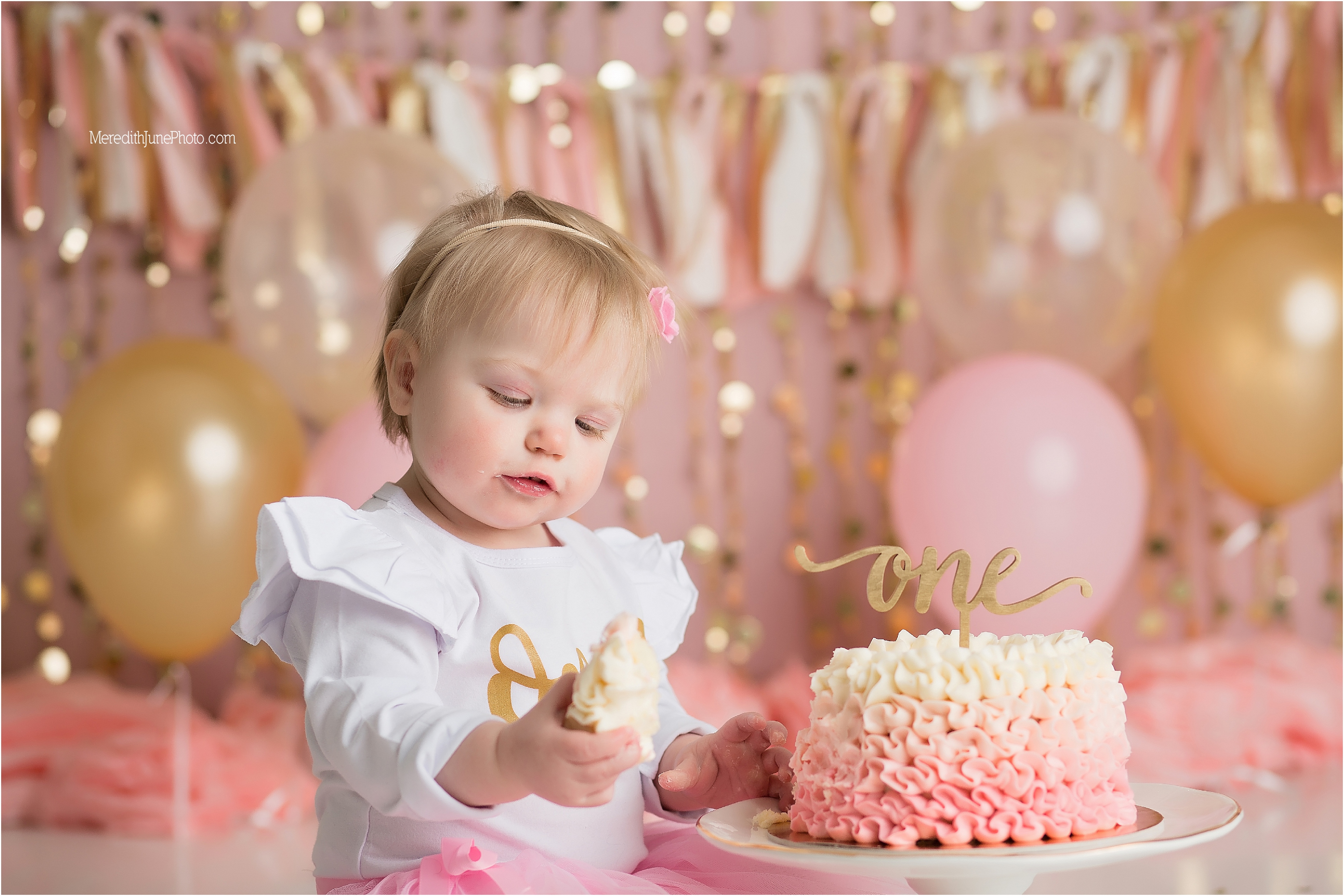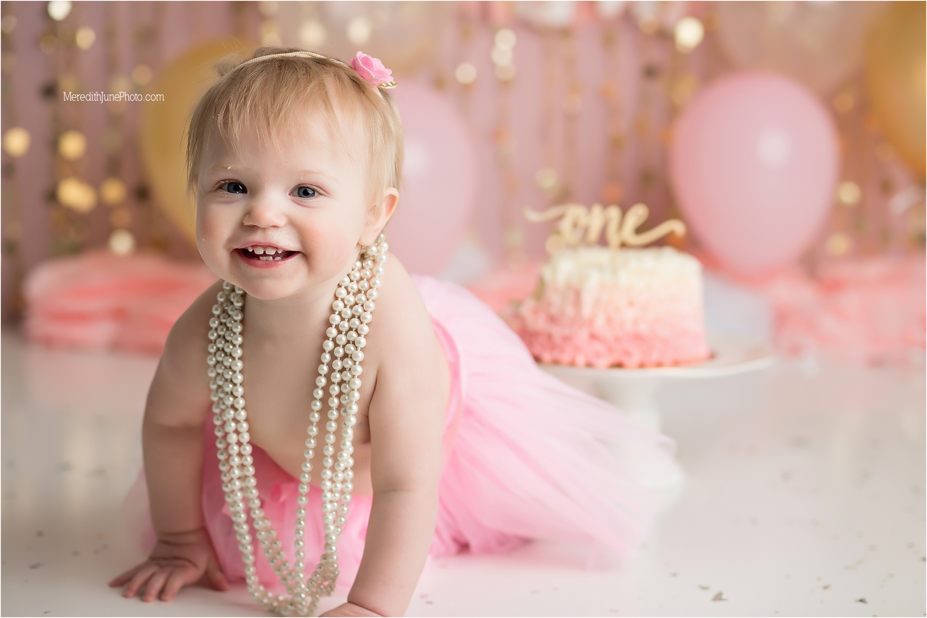 How fun is this one year cake smash?… I am in love with it. If you are interested in setting up a session for your sweet baby girl, please email me at meredithjunephoto@gmail.com! I am looking forward to hearing from you!