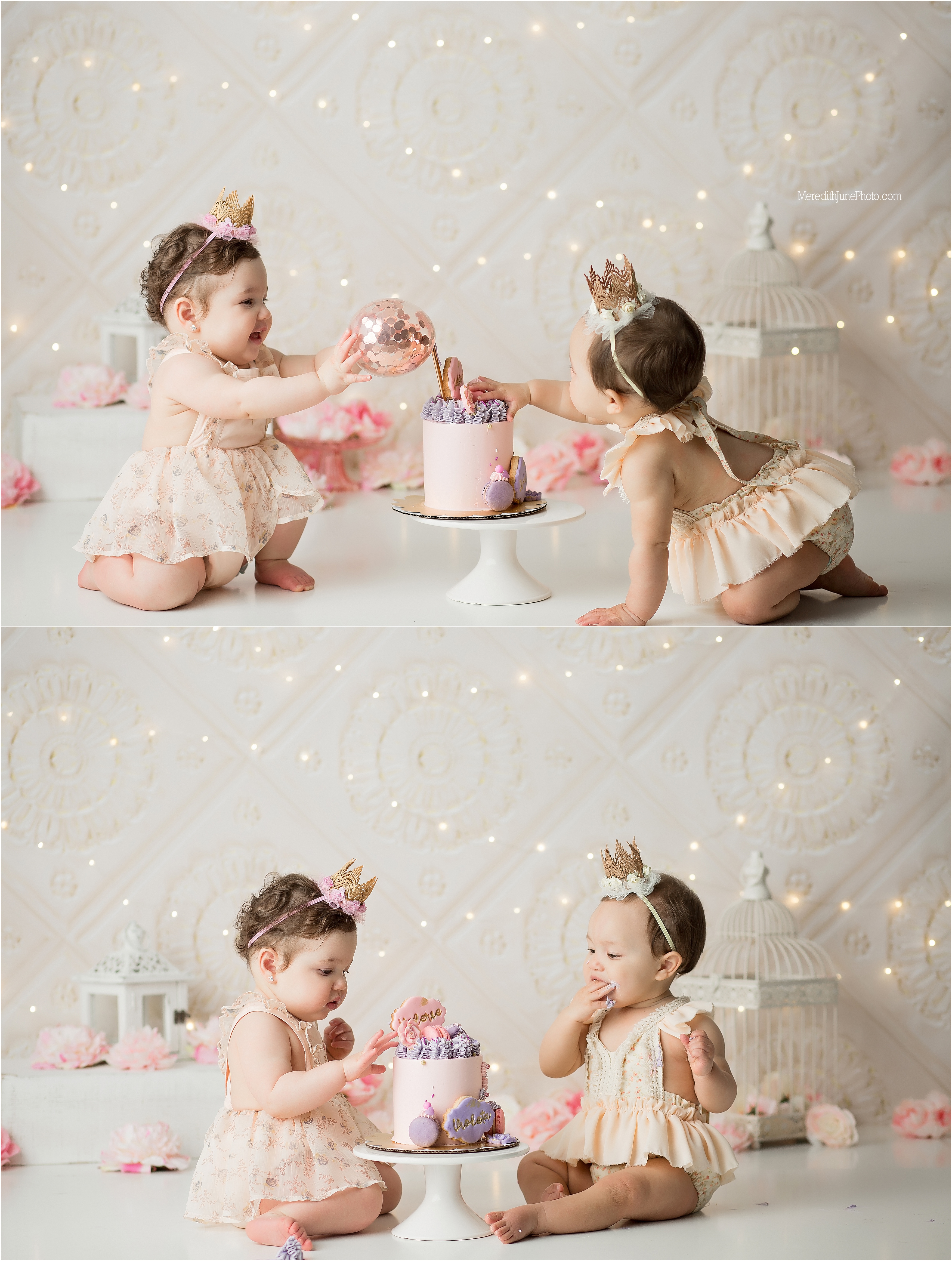 It’s so funny to me how most girls are so hesitant to dive in to their cake! These sweet girls were so careful and curious during their cake smash! It was so much fun to watch their little brains work and to see their reactions to all the chaos in the studio!