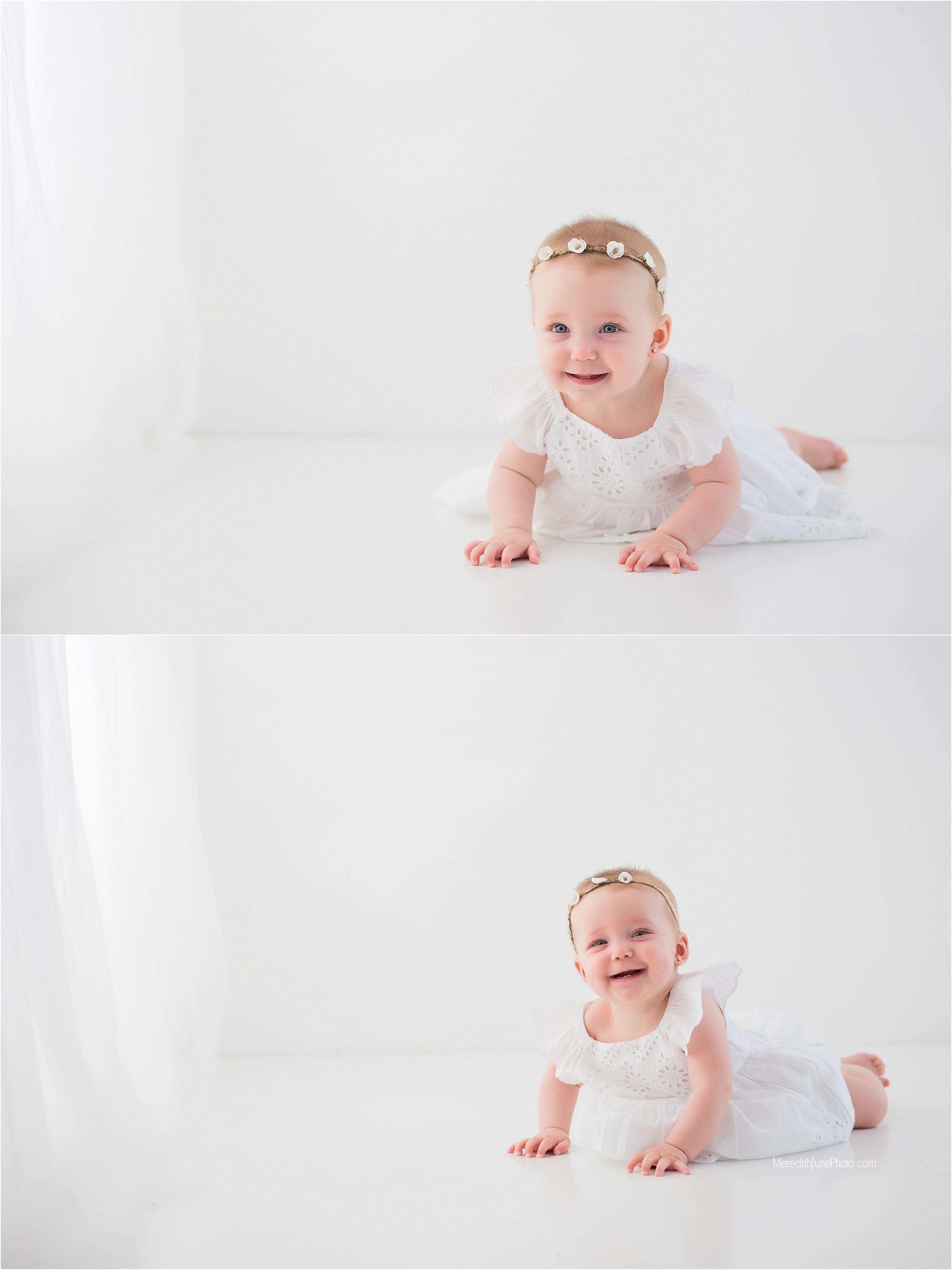 Brynn’s 6 month session is absolutely stunning! It’s no surprise around here that I love neutrals and a white space. With this session, I was able to bring those two elements together! Baby Brynn is such a happy and beautiful little gal. We were able to get so many laughs and giggles out of her during her 6 month session!