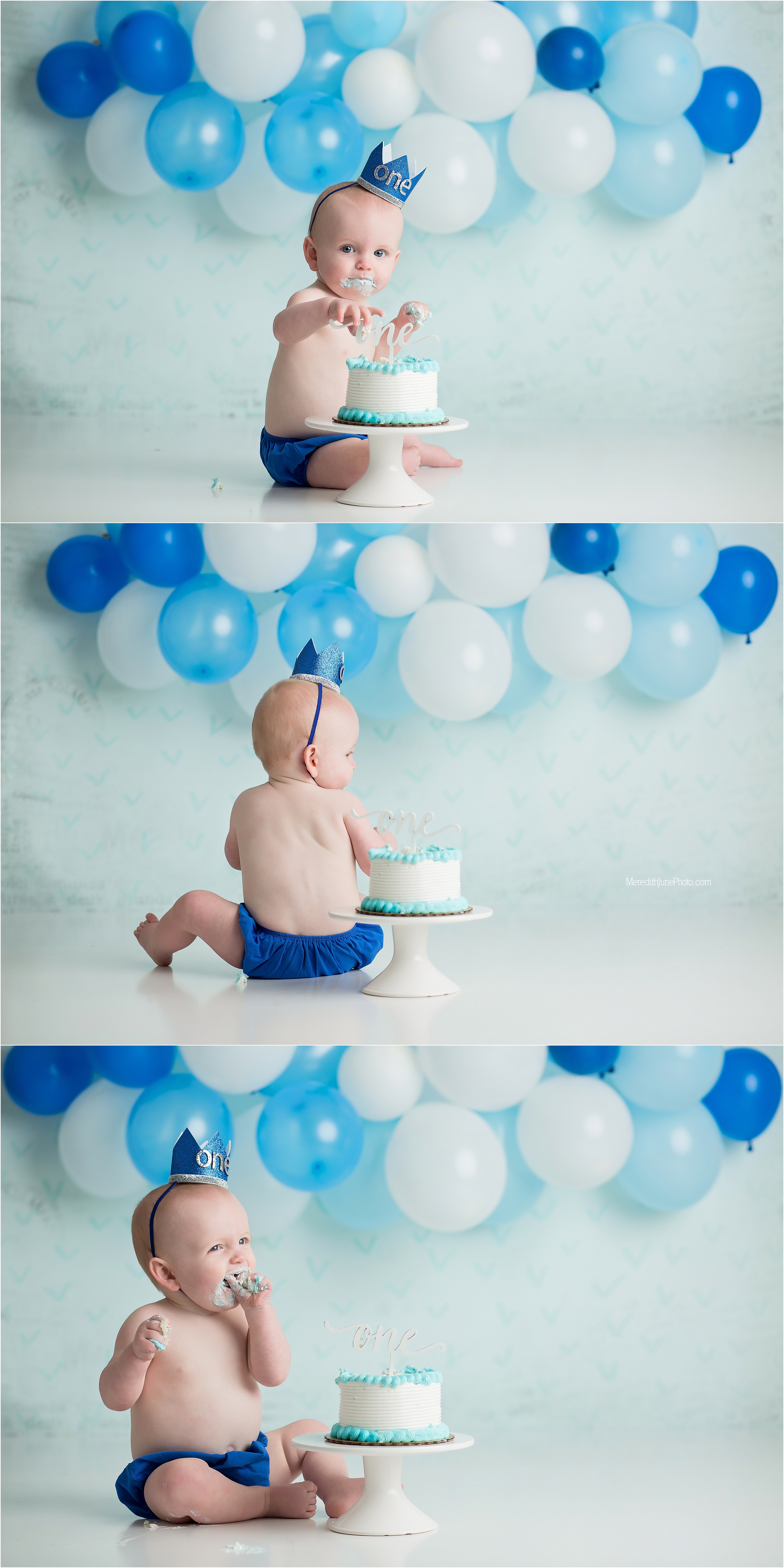 This boy is such a ham with the sweetest smile and beautiful blue eyes! We chose a color scheme of blue for Payne’s cake smash, which I think complimented his eyes quite nicely! It’s always funny to see how differently boys and girls react during a cake smash session. Most baby girls tend to be a bit more tidy and cautious where most boys are a bit more curious and spontaneous! Payne was living his very best life eating his cake and making all the mess his little heart desired!