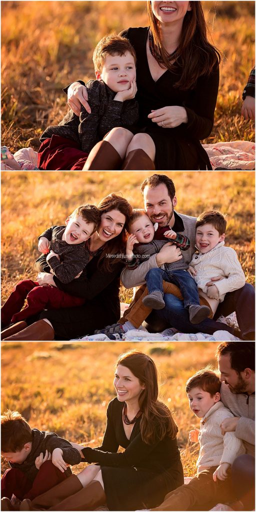 I love, love, LOVE the Hill family session! Outdoor fall family photos are so much fun! The lighting, colors and weather are all so perfect! This family was FULL of personality and fun. I think you can tell by the photos that there was never a dull moment with these 3 boys. (;