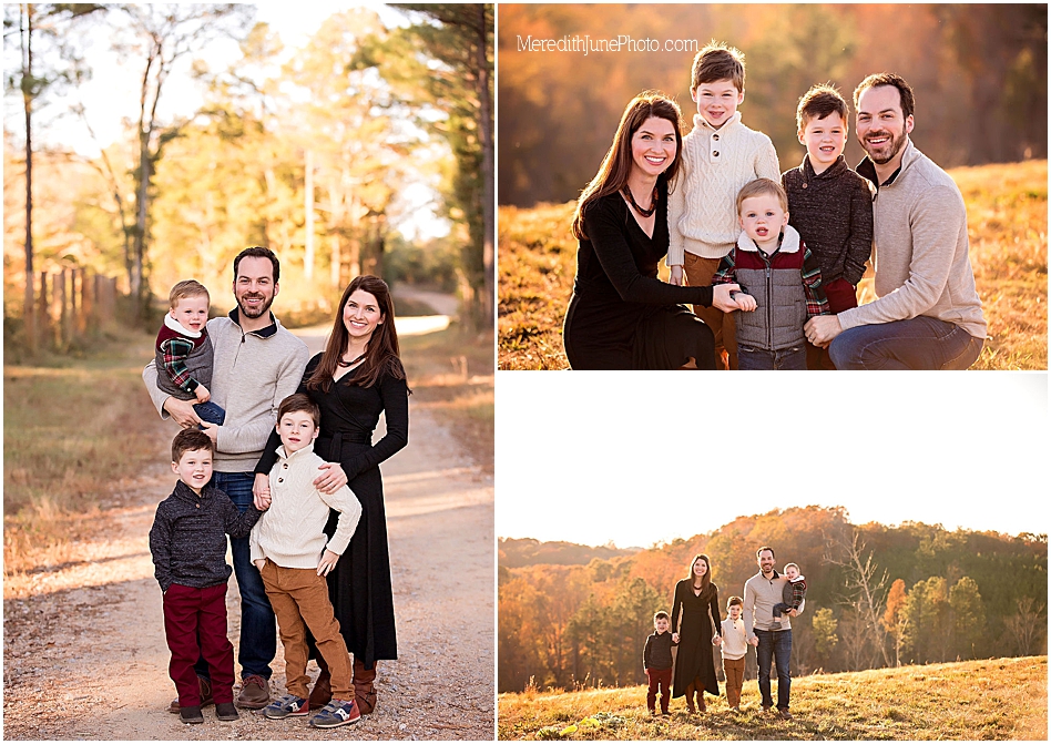 These photos are taken right outside of Charlotte, NC! Can you believe it!? This beautiful land is so close to home, but has the perks of feeling like your miles away. The lighting on top of the hill is everything I could ever hope for in a photo! Those are some of my favorite shots, along with the sibling photos. Capturing the three boys playing and joking around was definitely a highlight of my day! I love capturing candid moments of families laughing, playing and doing what they do best! But who am I kidding!? I also love the more posed and portrait-like photos we took as well. This fam is wonderful in so many ways and made my job so easy on this beautiful fall day!