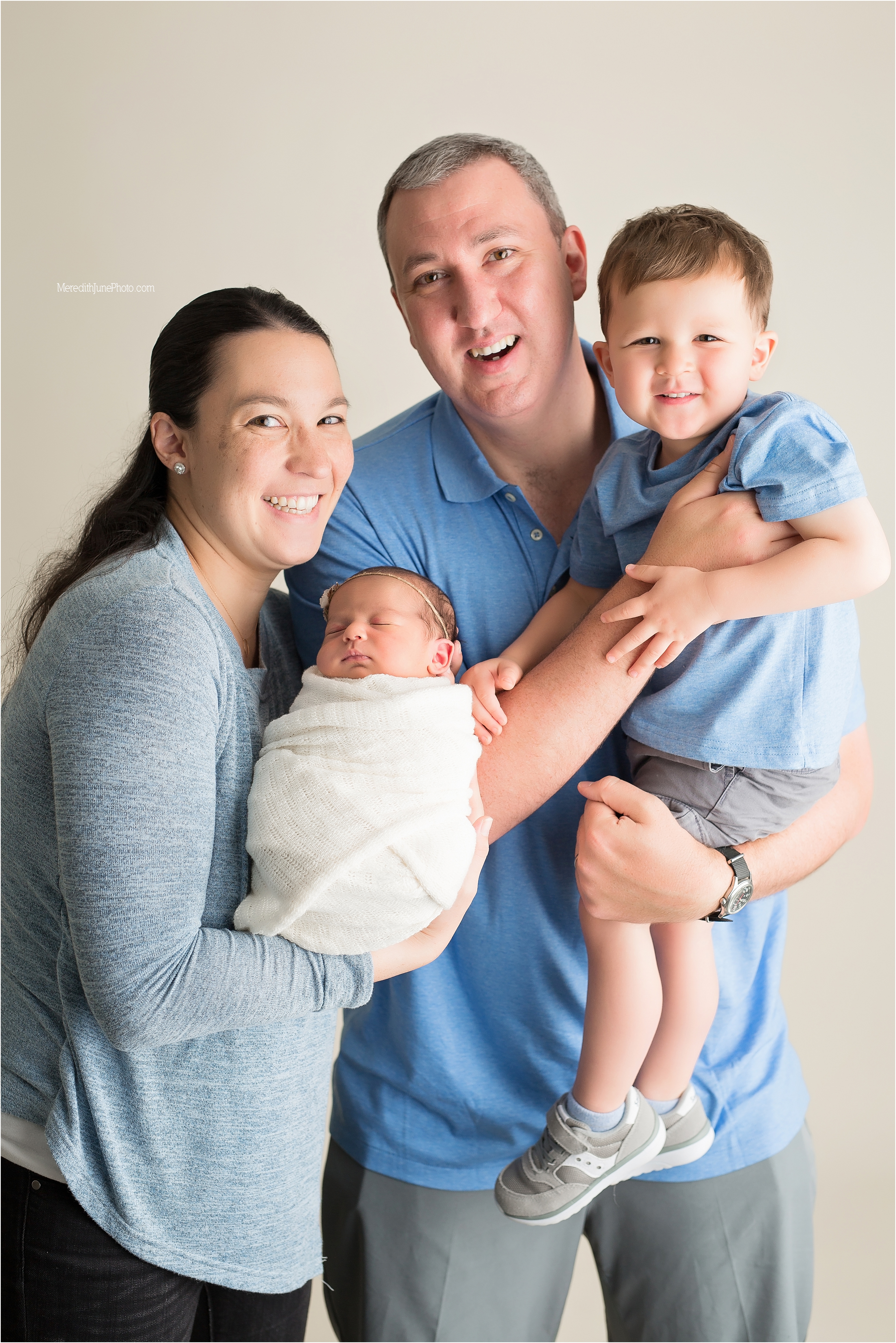 When the family first arrived we immediately started with sibling photos of baby girl and her big brother! This gave the parents a second to relax and get an idea of how to rest of the day would go. Danielle’s big brother was SO sweet and good throughout the afternoon. Once we finished with brother and sister shots we moved into the family portion. I grabbed a few photos of the entire family and then some single shots of baby girl with just mom and dad. This family could light up a room with their amazing smiles and personalities! I really enjoyed my time with them in my studio!