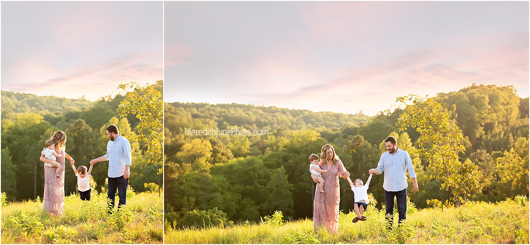 I had a magical family session with The Morris Family a few days ago. I have never been so excited to share one of my family galleries with you! Something that made this session extra special was that we took the photos on their land where they will soon have a house…. right where we were standing on the mountain! Can you believe this is just outside of charlotte!? I am still swooning over all the open space, the sunset, and how beautiful this family is.