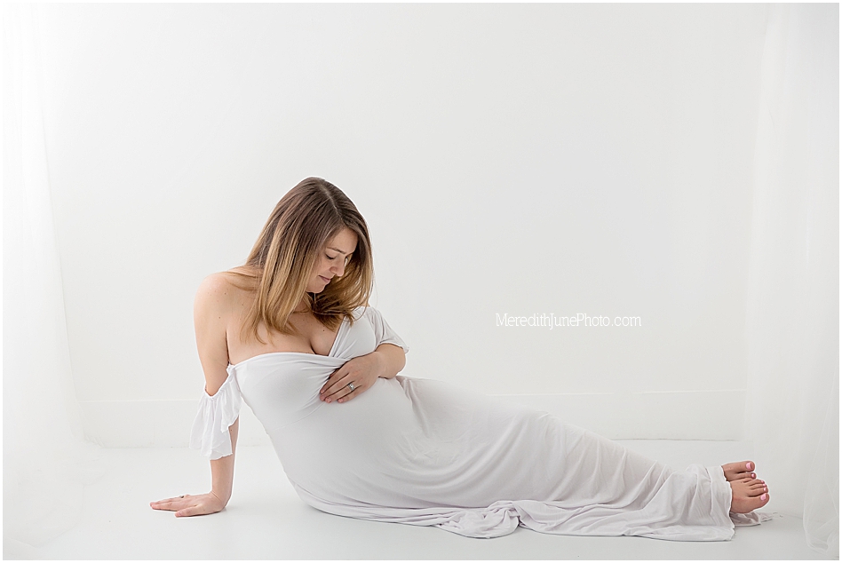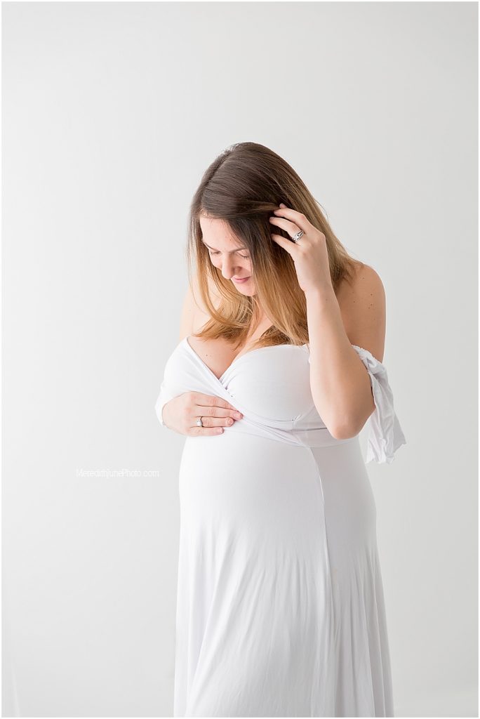 Mrs. Watson chose to use my dresses from MJP Client Closet for her photos! She chose two different outfits to wear and she looked AMAZING in both of them! We started off her session in a white cap sleeve gown. I grabbed a few different posed photos of just her and then some with her husband in my white space. While she changed into her next gown, I had the chance to chat with her husband. This is when I got to know more about their family. This is the part I love most about my job.. just connecting and learning about so many new families who soon turn to friends!