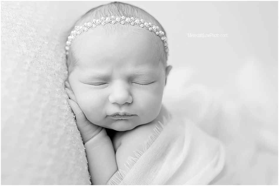 Black and white newborn baby girl photos by Charlotte NC photographer