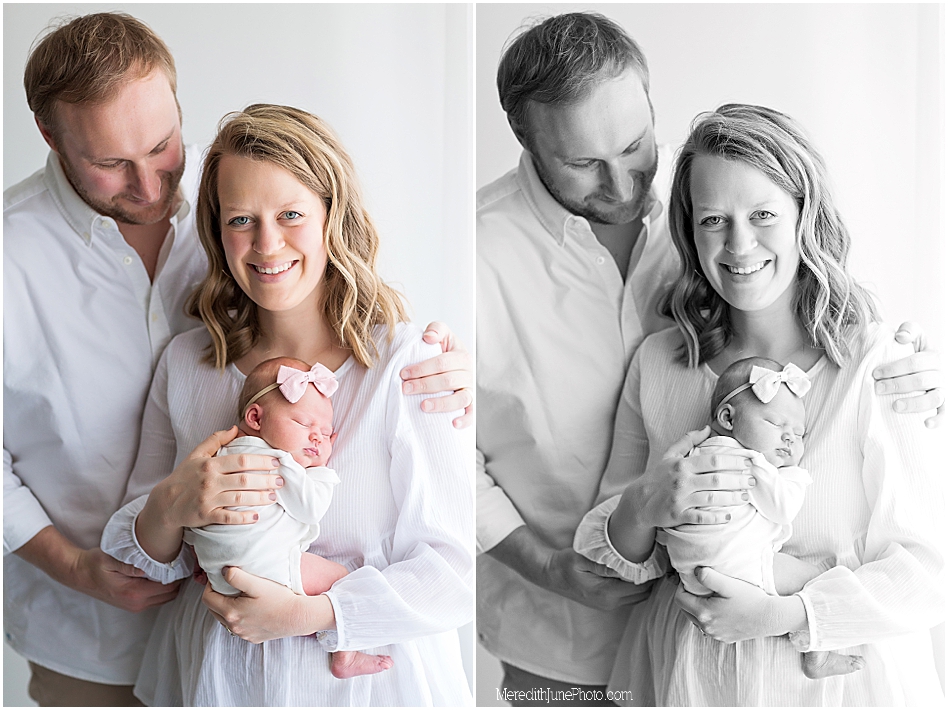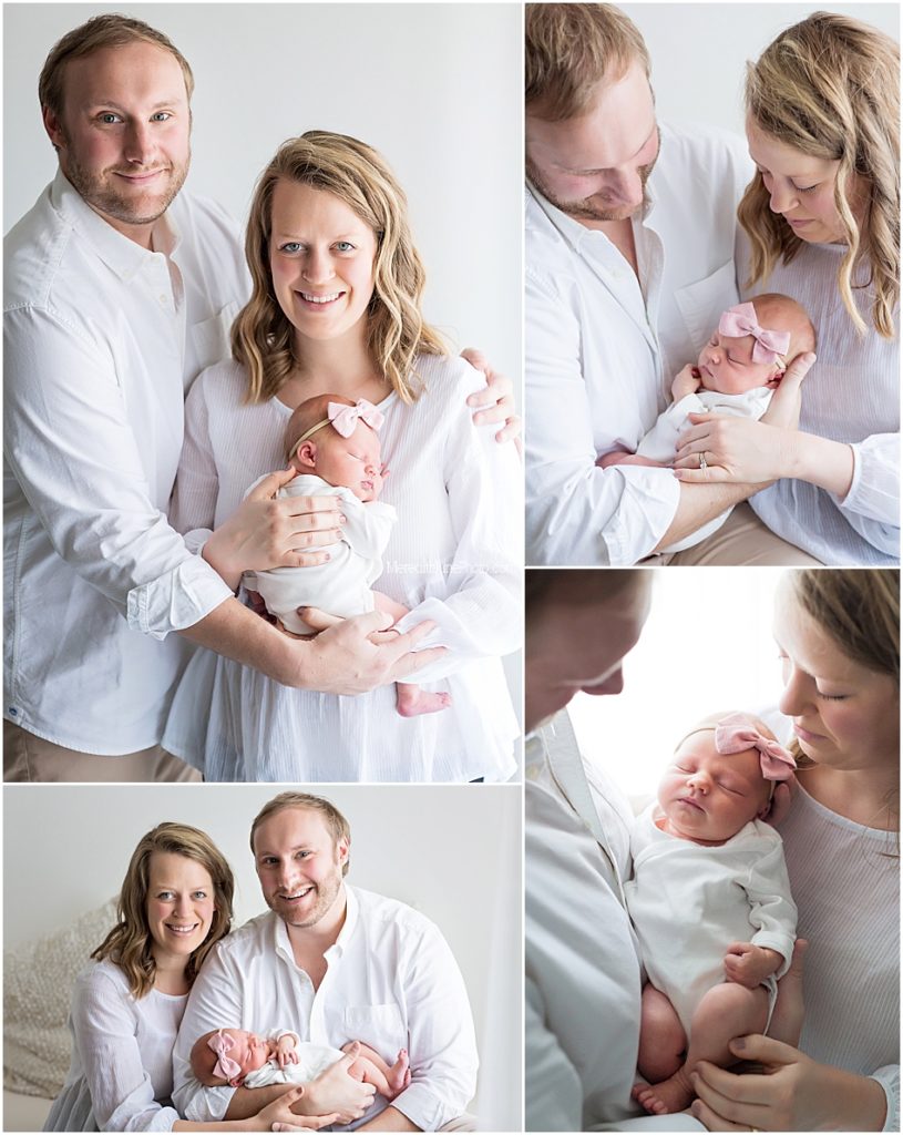 Some of my favorite pictures are of Emmaline in the scalloped basket. We layered the basket with a cream, furry blanket to add a little bit of texture. The cream tone against the white space look gorgeous! I also LOVE the family shots. Baby E’s parents are the sweetest and I know they will be the best mommy and daddy to their first born.