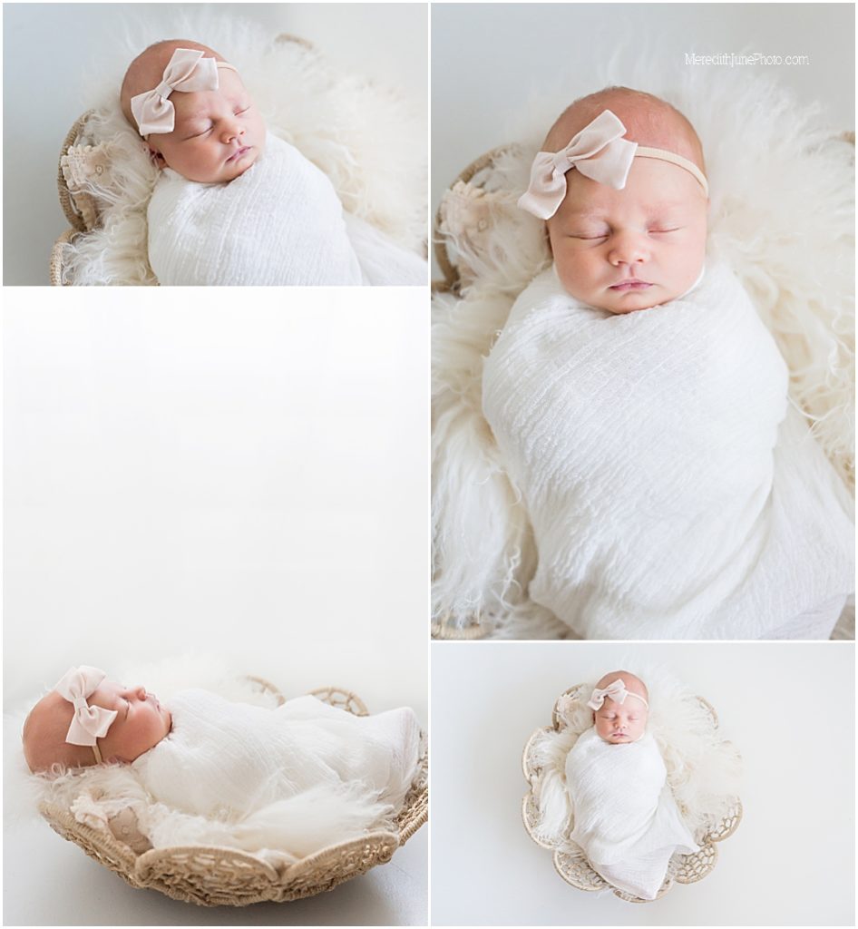I am always so excited to share a simple studio session at Meredith June Photography. The bright and white space is such a classic and timeless look. Emmaline’s newborn photos are some of my favorites this far, so make sure you keep scrolling and take a look!