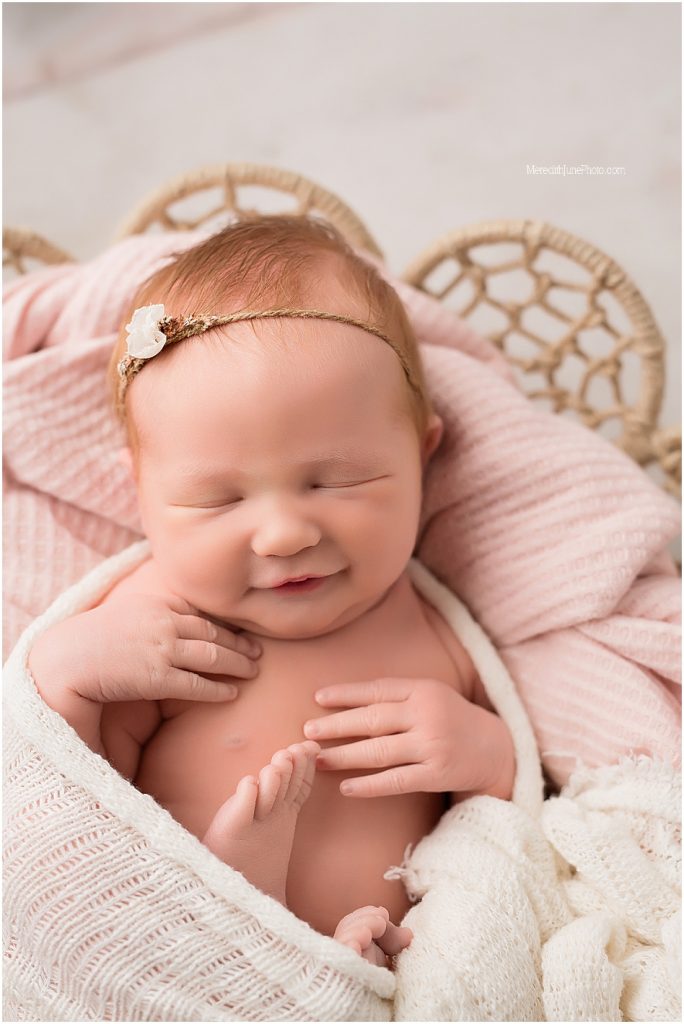 I have a couple of favorites from this newborn session. My first favorite is the very first photo in the blog. The way she is grinning and has her hands across her little belly is too much! It’s so precious. My second favorites are the detail shots. I truly believe if you don’t capture the small details then you aren’t capturing the full memory. I love how you can see her wrinkly toes and her tiny bottom lip tucked under. Those are the little things you don’t want to forget when life passes you by.