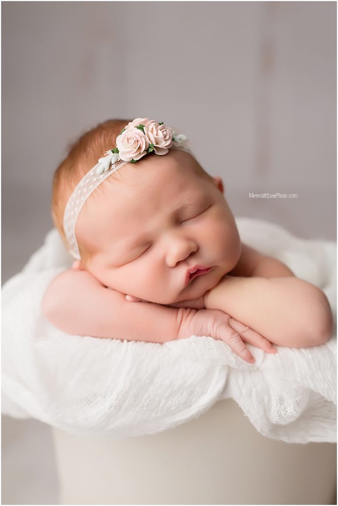 These newborn baby girl photos are some of my favorites that I have done! This was the SWEETEST session and this babe was so snuggly. She slept for most of her session and had the yummiest little rolls. I can’t wait for you to see these photos.