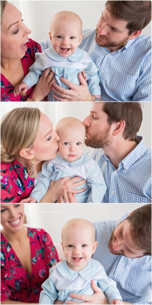 Back to the real star of the show… this baby boy was just precious. When I emailed his parents their planning questionnaire, they immediately knew they wanted a bright and airy cake smash. Their wish was my command! We used my white space for one year portraits and family photos, which are hands down my favorite pictures in this gallery! For the cake smash portion, we kept the theme consistent and used my white, wooden, paneled backdrop, but this also added some subtle variety.