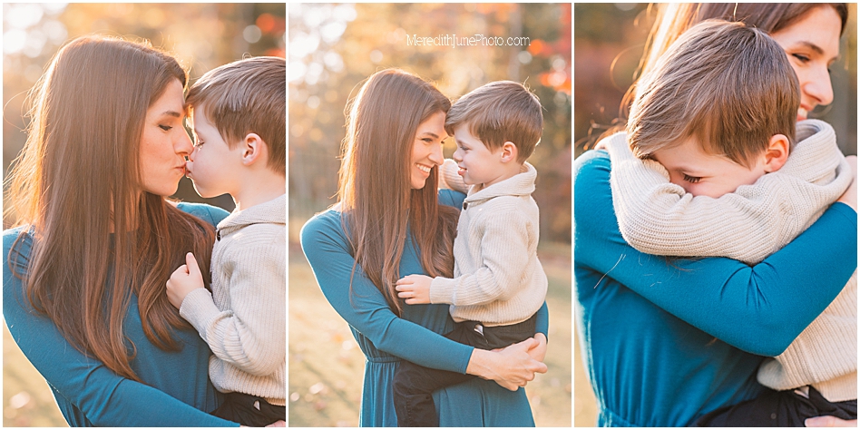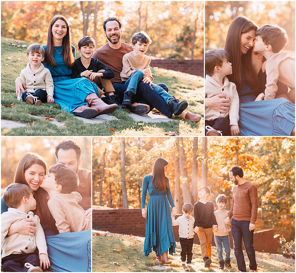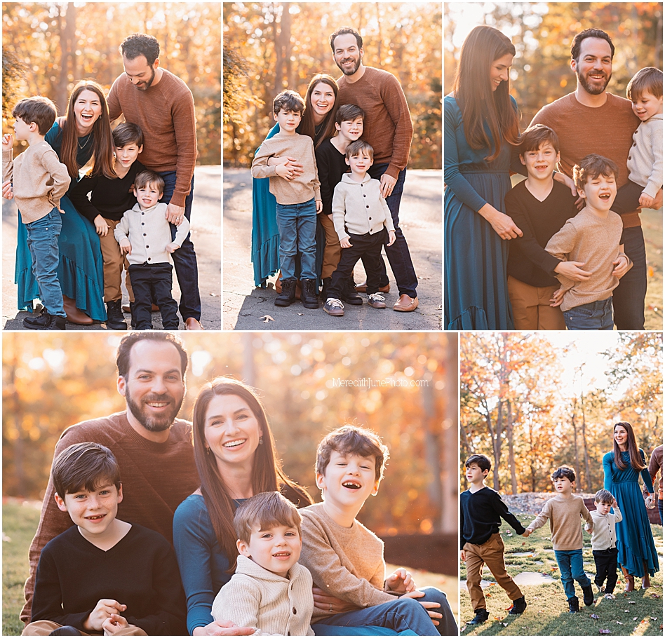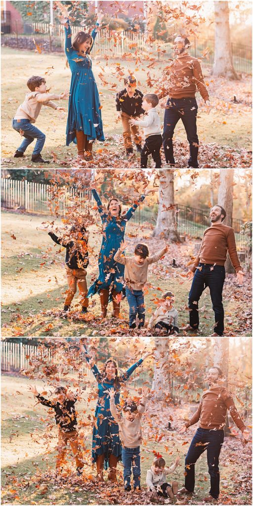 These fall family photos were extra special because we did the shoot at the Hill’s home. I think this is such a sweet and unique idea. I was able to capture this current season of life in a photo and I think that’s a really special keepsake. It’s no surprise that I love fall family sessions around here! Can we just take a minute to acknowledge this gorgeous glowing light!? This family is already photogenic, but the fall foliage and evening light really make these photos stunning!