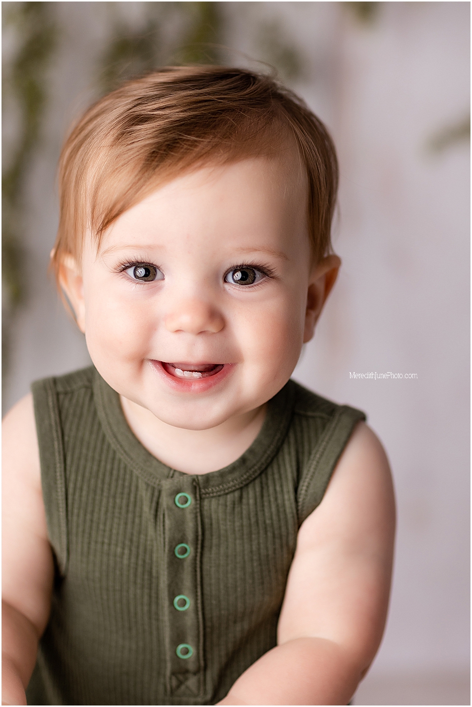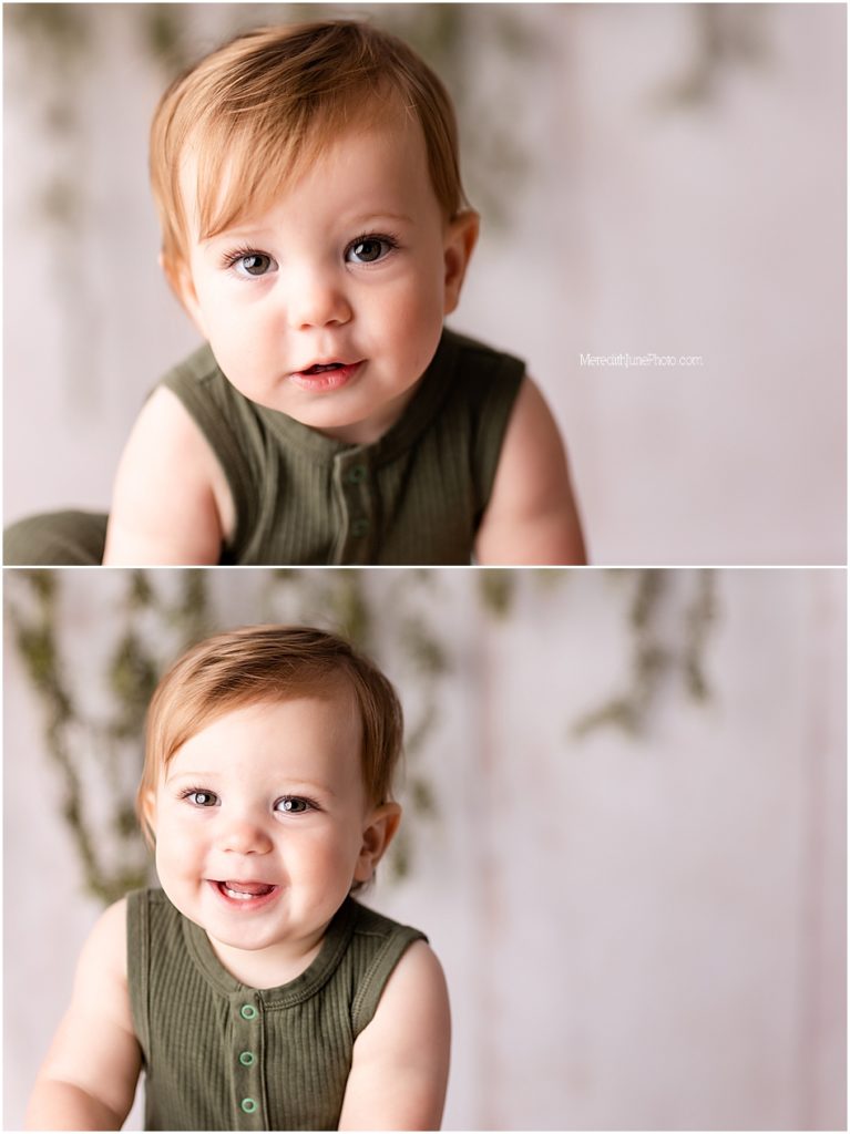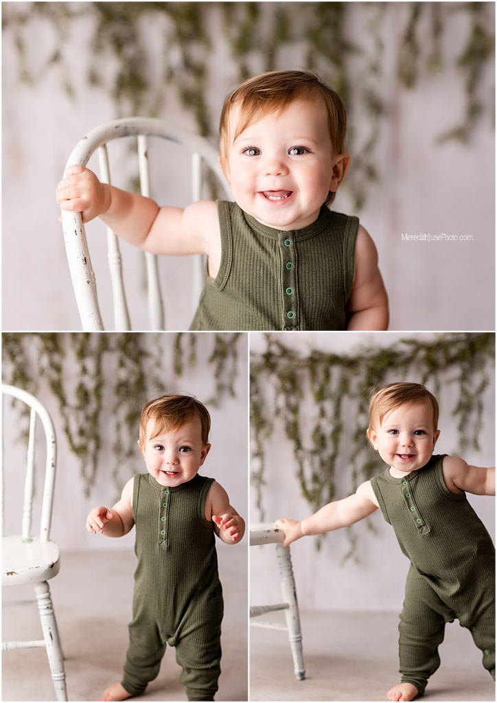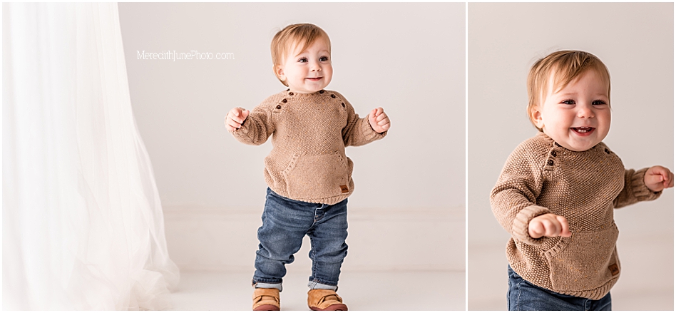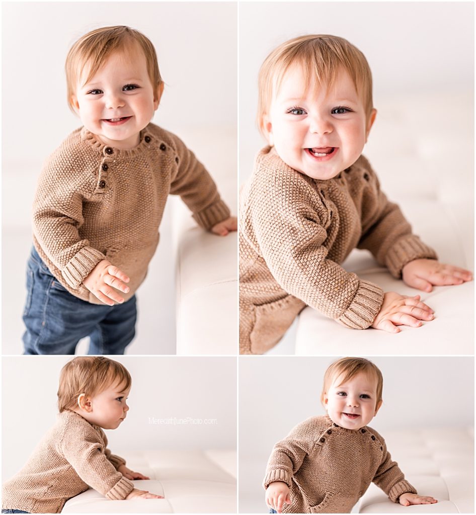 If I could give this one year milestone a name I would call it “Earth tones and neutrals” lol. I cannot get enough of the earth tones and neutrals trend. It’s so timeless and classic, so your photos will never be outdated! We did a few photos in front of my white paneled back drop. I added a garland of greenery to add a little variety and color to the gallery. This also matched his jumper perfectly!! We finished up the session in my white space. These are some of my favorite photos! Can we also talk about how adorable toddlers look in a sweater!? I truly cannot.
