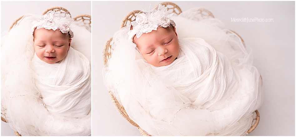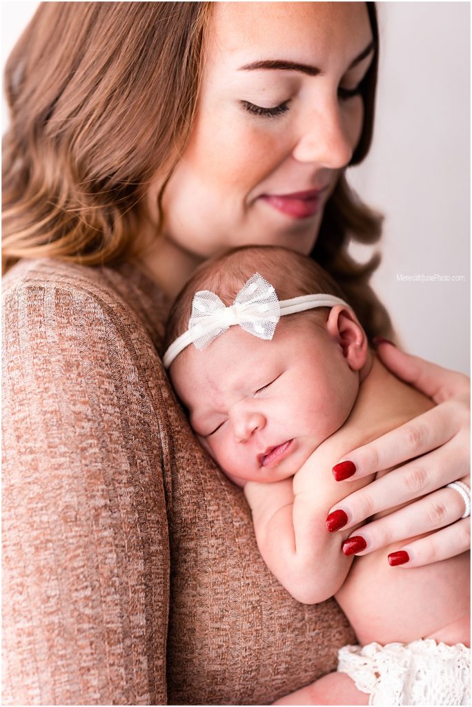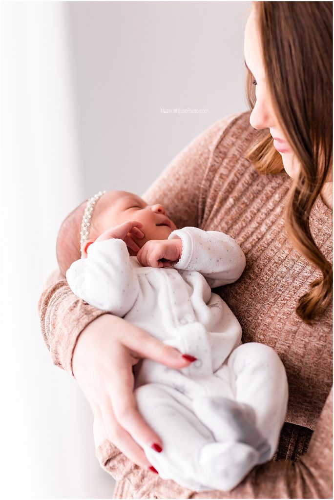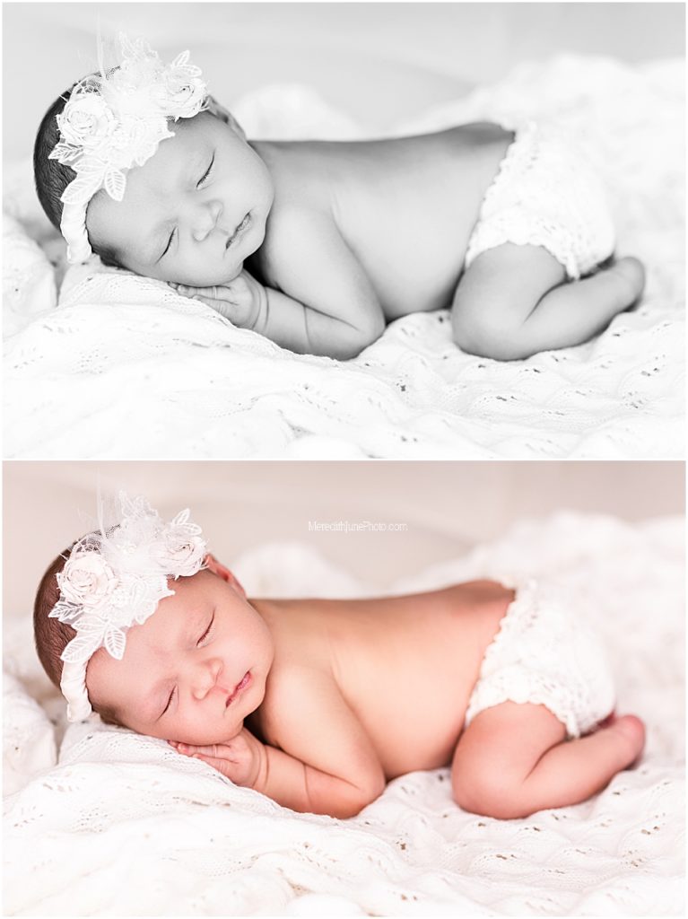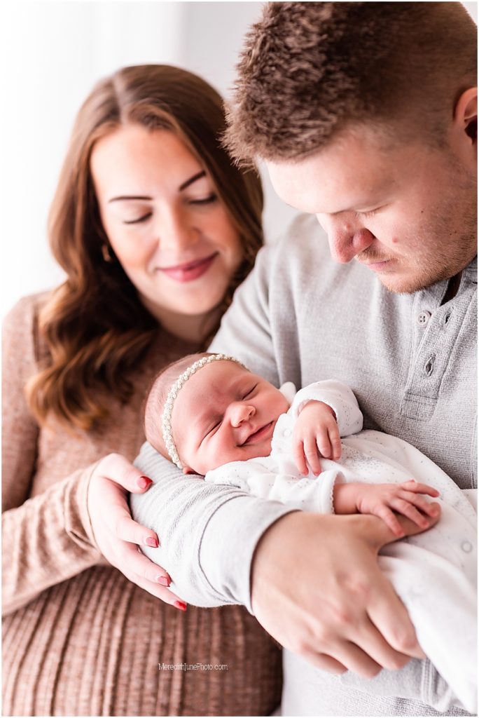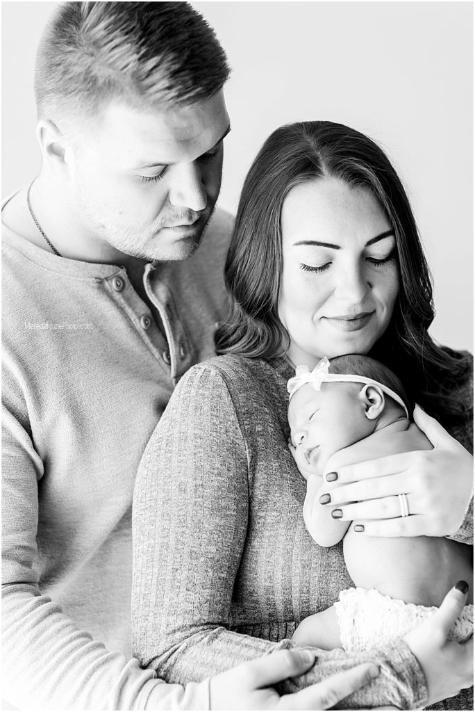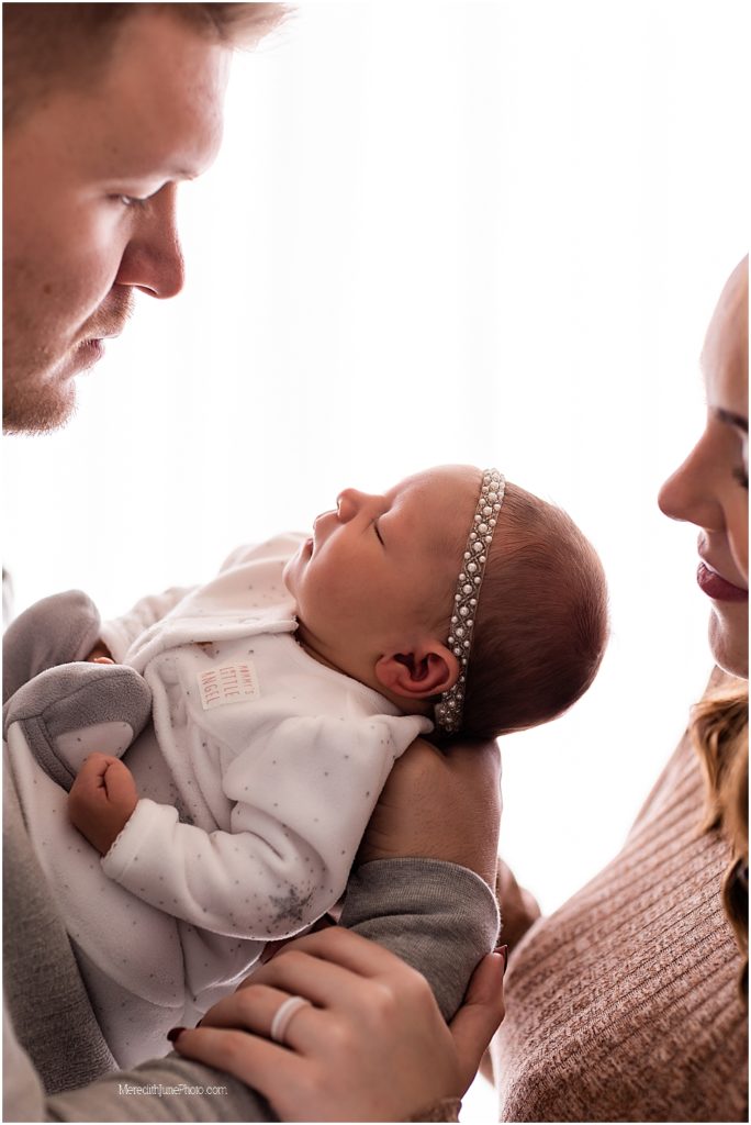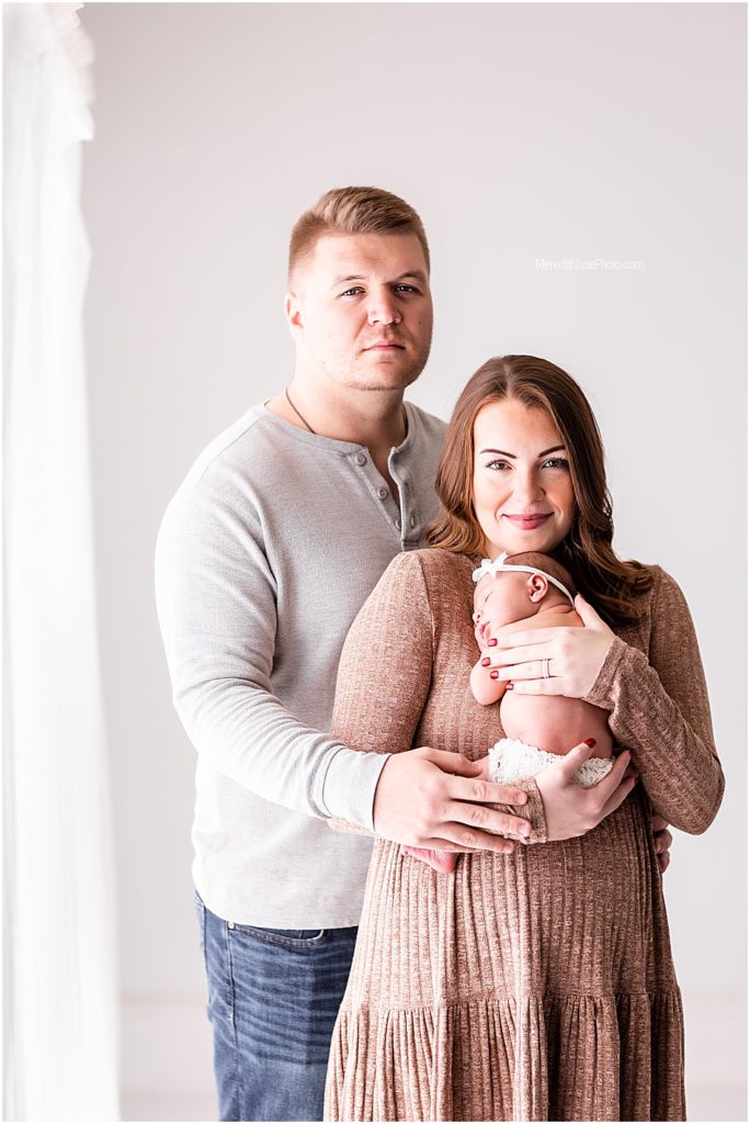 We all agreed that we loved neutral tones and bright whites. Mom and dad also said they wanted to keep their photos bright and airy, which just happens to be my specialty! Their baby girl was absolutely precious during her session. She posed so perfectly and really made my job easy! Baby girl loved snuggling up to her parents and being swaddled in anything soft. She slept for almost the entire time and I couldn’t stop saying, “She’s so perfect!” because it was so true!