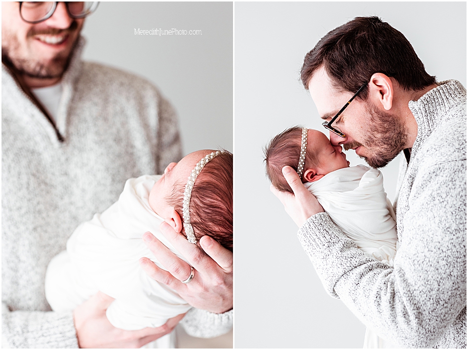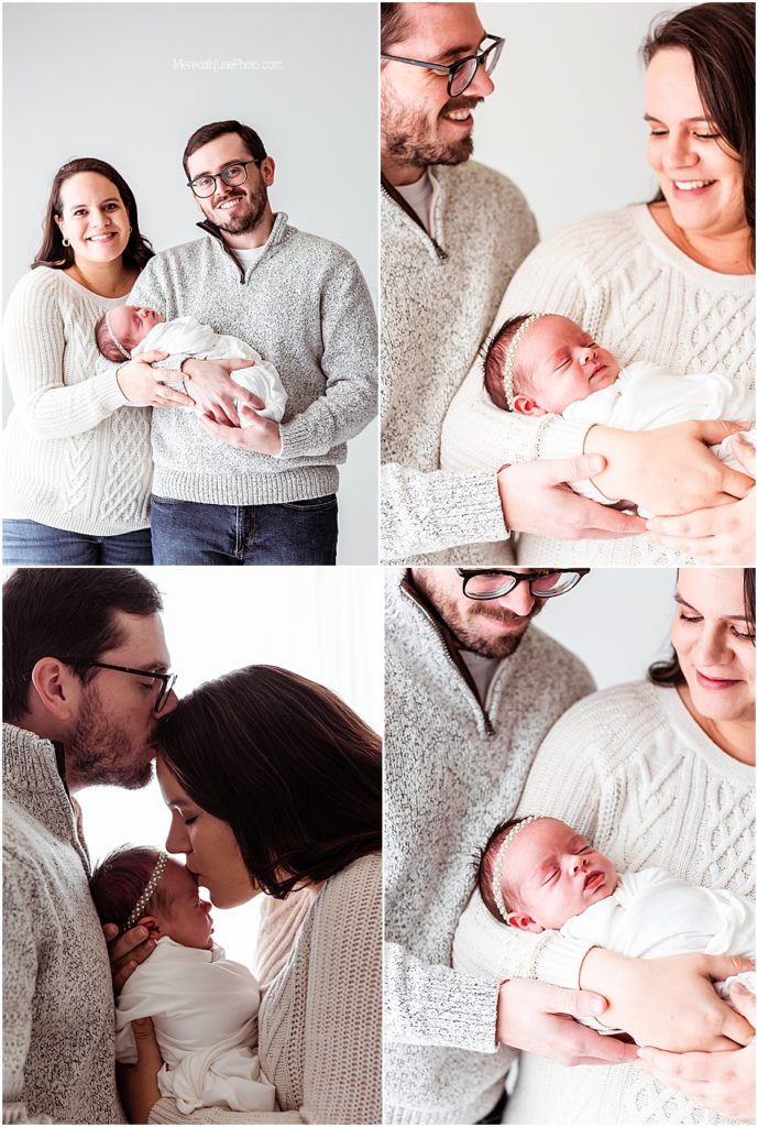 We started the session with a few photos of just baby girl. One of the reasons I love the simple studio session set up is because we use minimal props. This brings the focus to just your baby and allows me to get those candid newborn photos. Once I got what I needed of baby girl we moved right into family photos. This little babe is the luckiest girl because her parents love her SO much! I think you can see the love pouring out in these photos.
