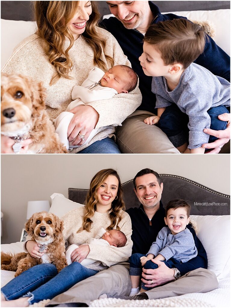 We started the Campbell family lifestyle session with family photos in the master suite. We got so many cute photos of the brothers snuggling up together and with their mom and dad! Once we got everything we needed we moved into the nursery to snap a few more photos. I always like to try to to capture a few photos of baby in the crib and with each individual parent when I shoot a newborn lifestyle session.