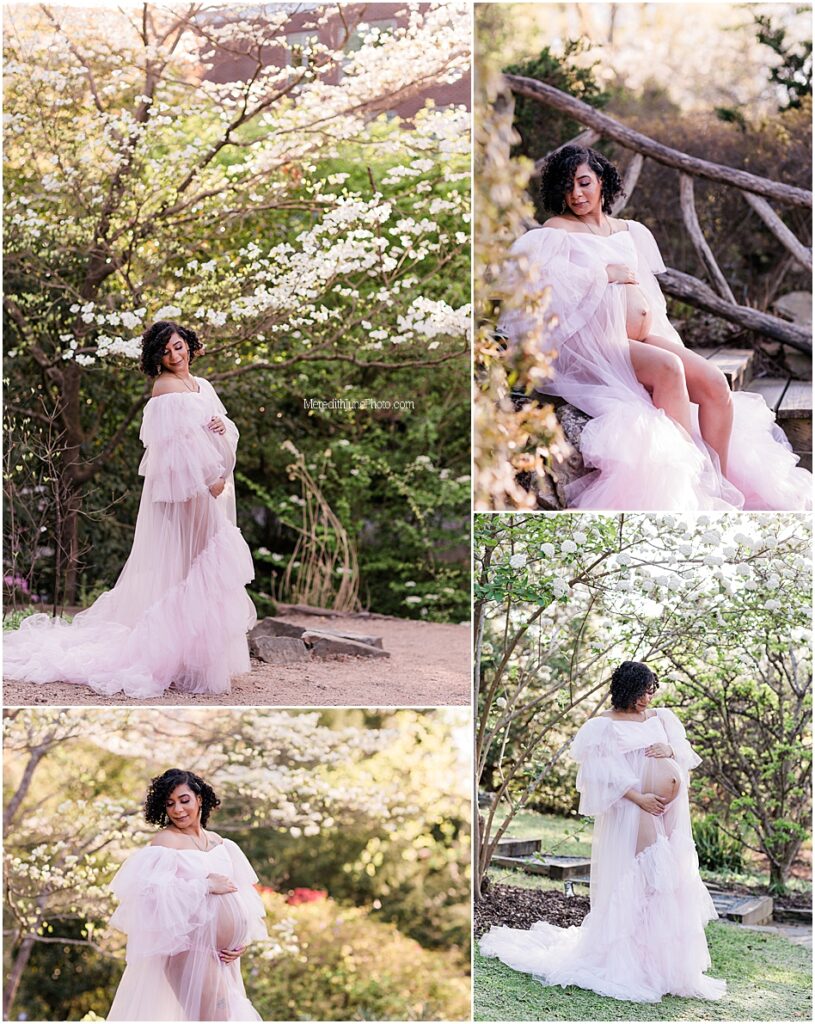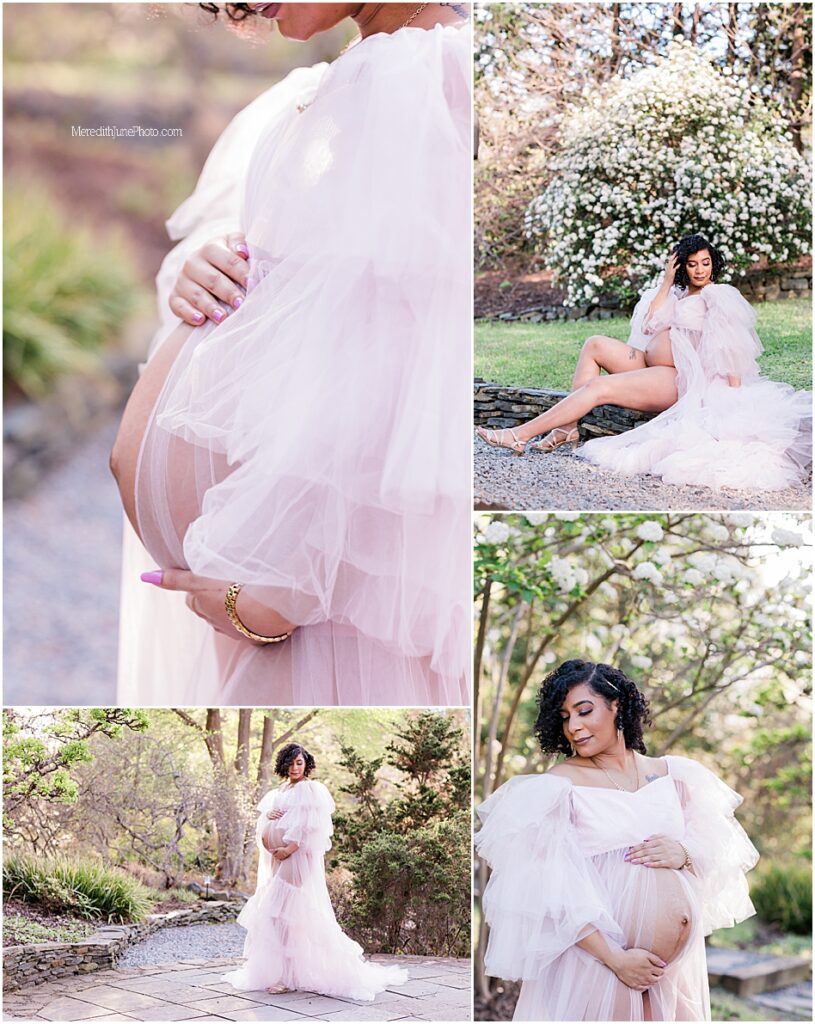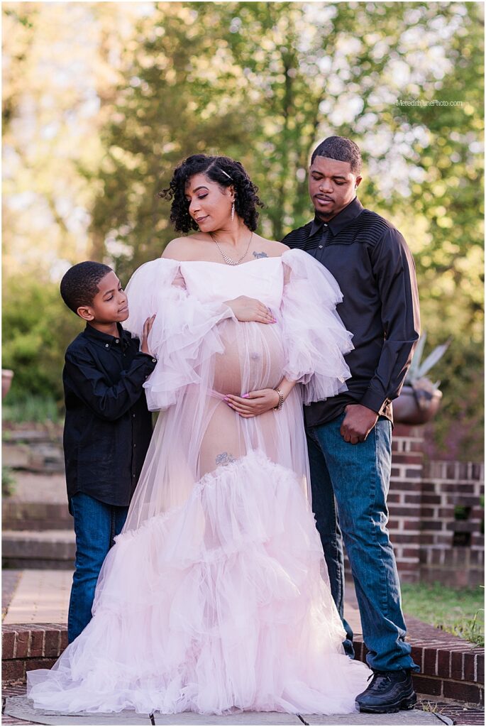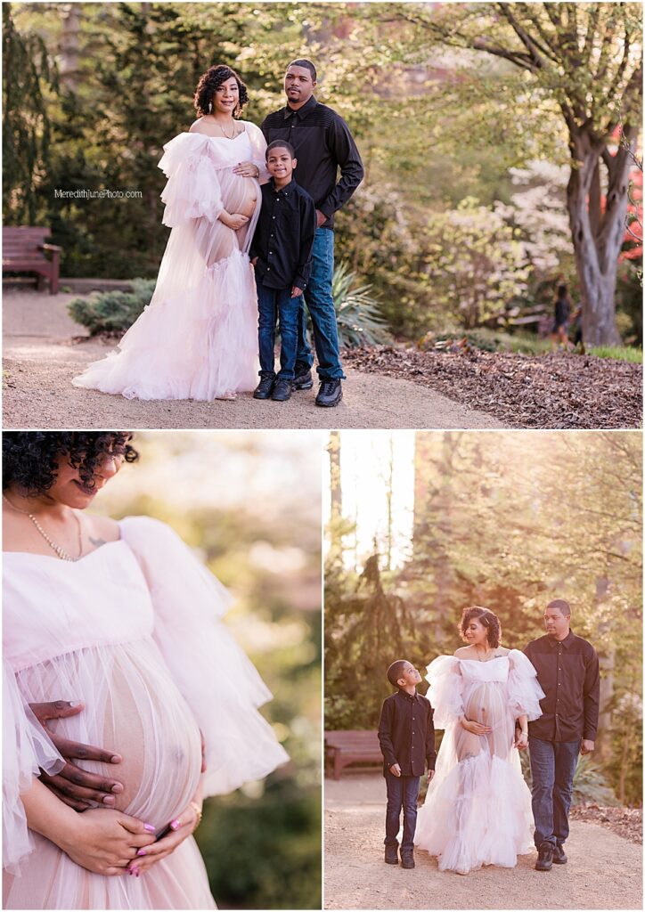 This Garden maternity session with the Brooks family is absolutely stunning! I still am simply not over it. We took these photos at the beautiful UNCC Botanical Gardens and we had absolutely perfect weather, light and scenery. This soon to be family of four is so sweet and already have so much love for their new little baby!
